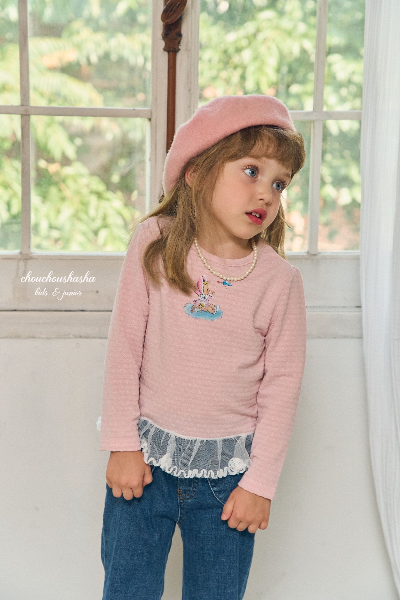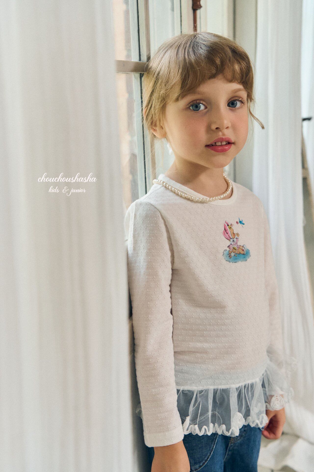 胸元には雲に乗った天使のプリントをあしらい、愛らしいデザインに仕上げました。