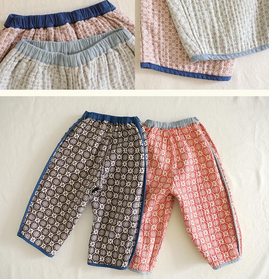 ヴィンテージ感のある柄が印象的なリバーシブルパンツです。