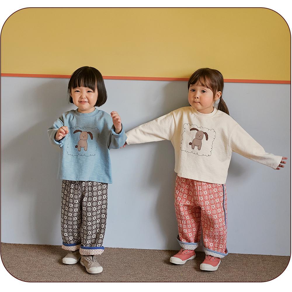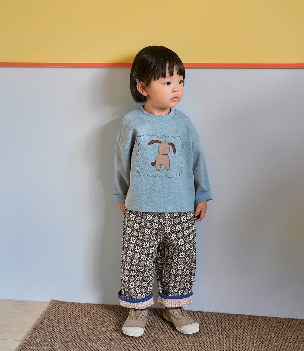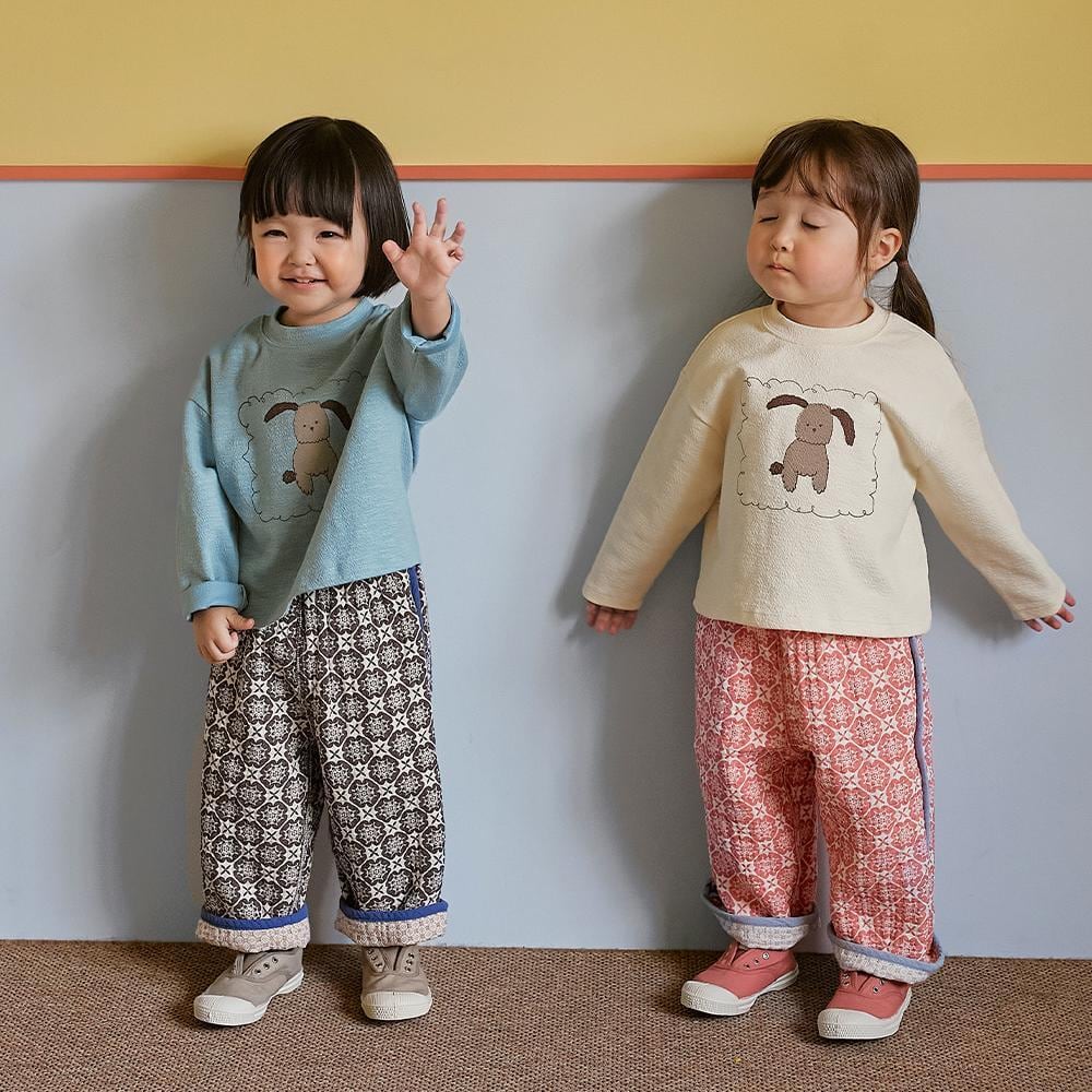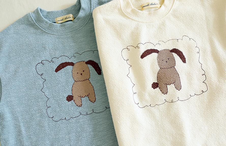 フロントにはやわらかなタッチの犬のプリントを施し、シンプルな中に可愛らしいアクセントをプラス。
