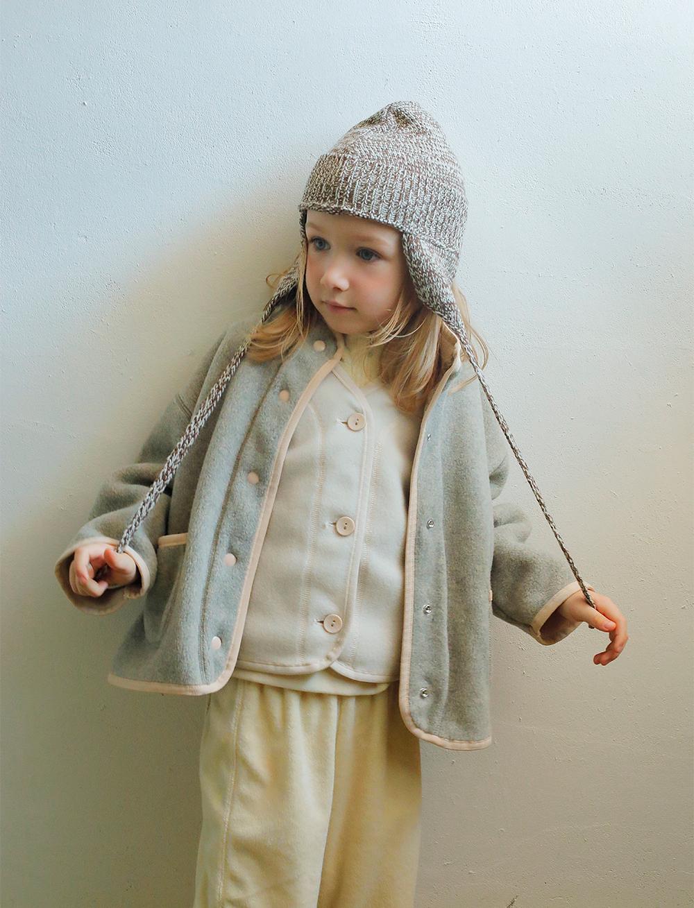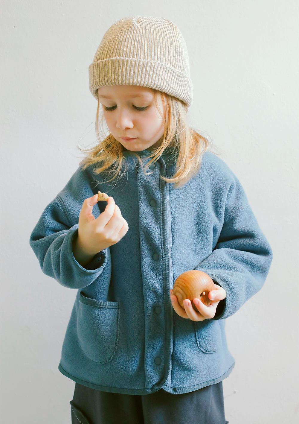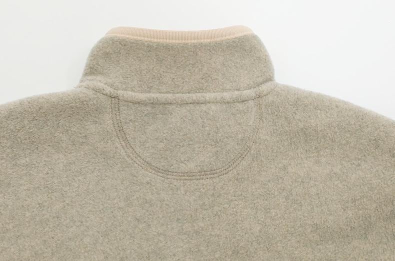 厚みのある両面フリースを使用しており、優れた保温性とナチュラルでやさしいカラーが魅力の一着です。