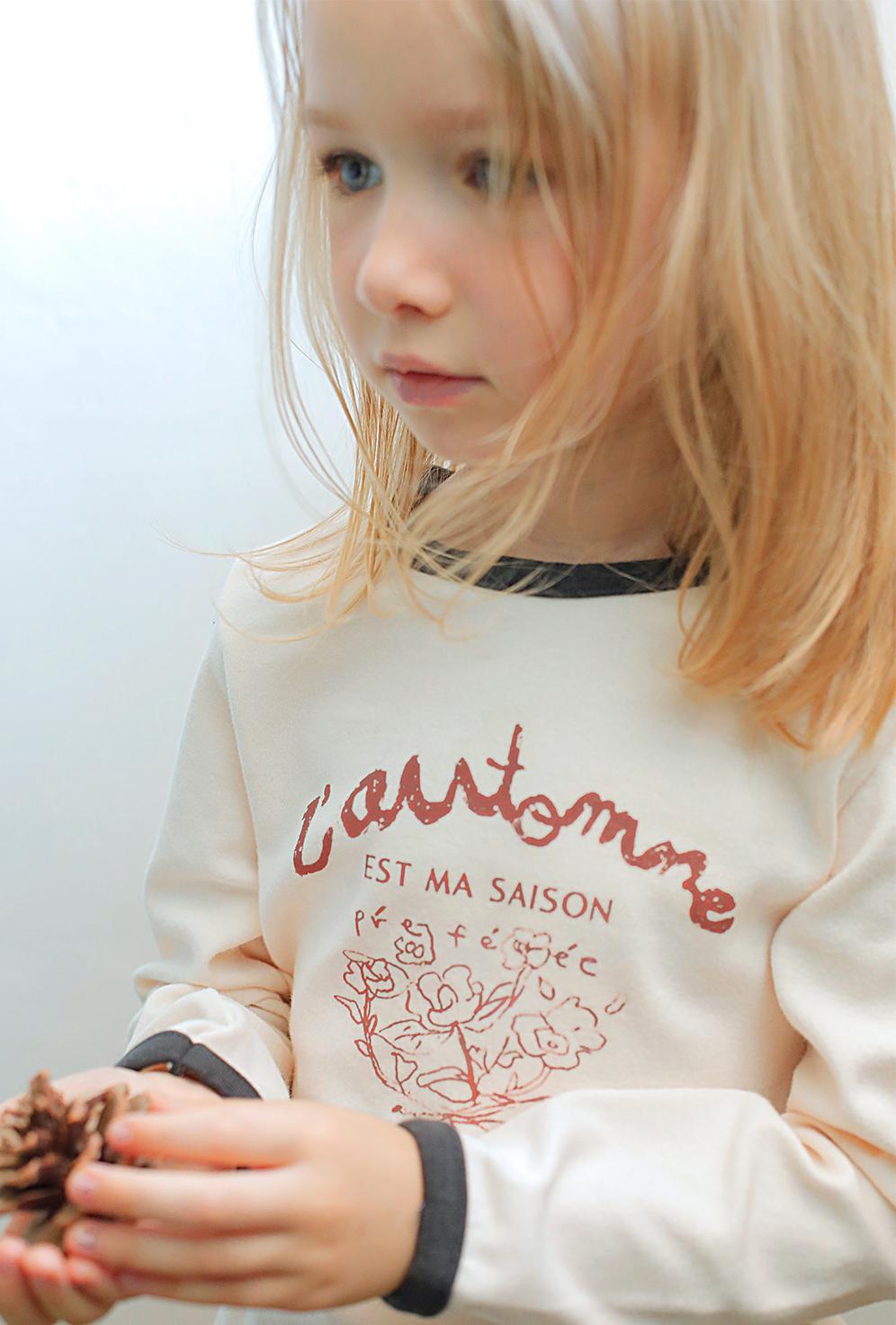 ネックラインと袖口は配色のバインディングでカジュアルなアクセントを添え自然なタッチのフラワープリントが男女問わず取り入れやすいポイントになっています。