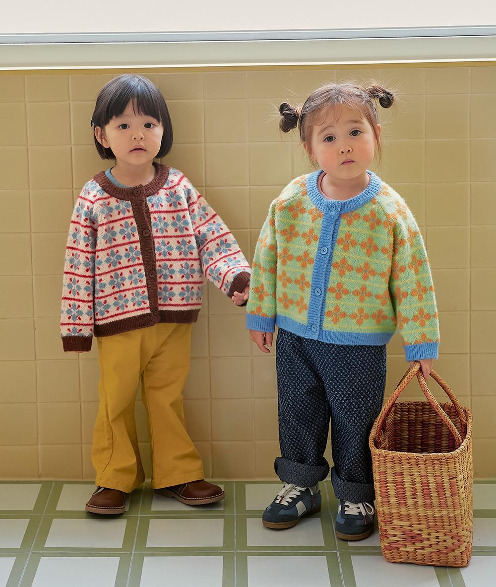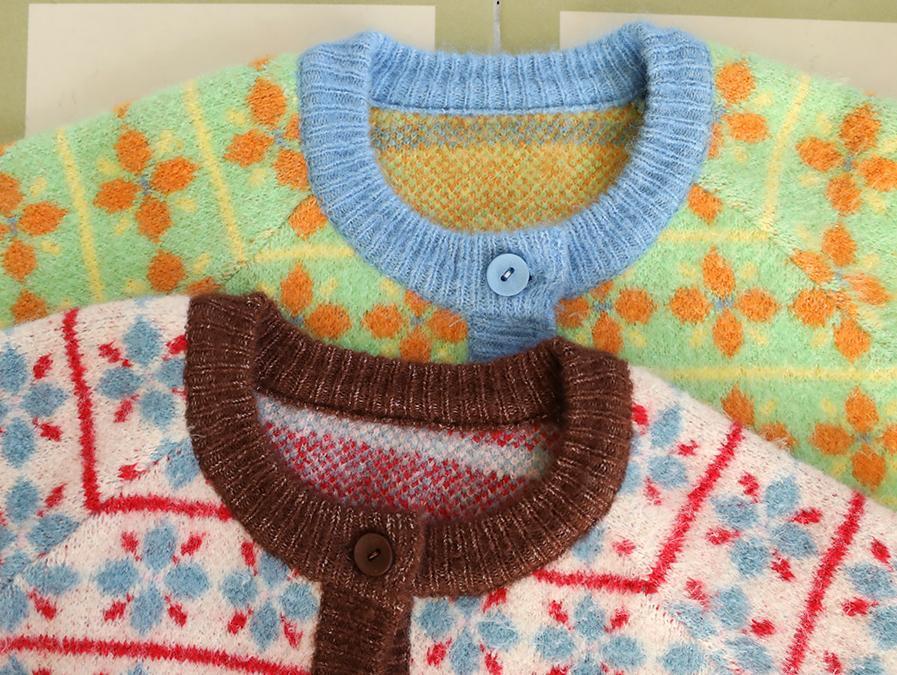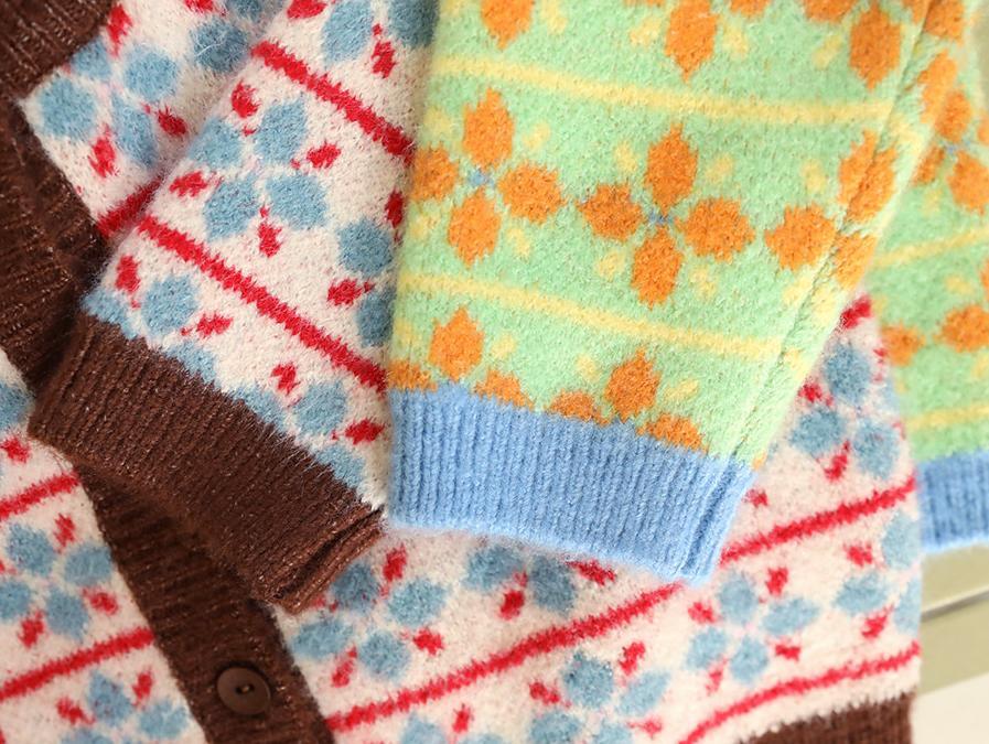 ヴィンテージライクなジャカード編みが印象的なニットカーディガンです。