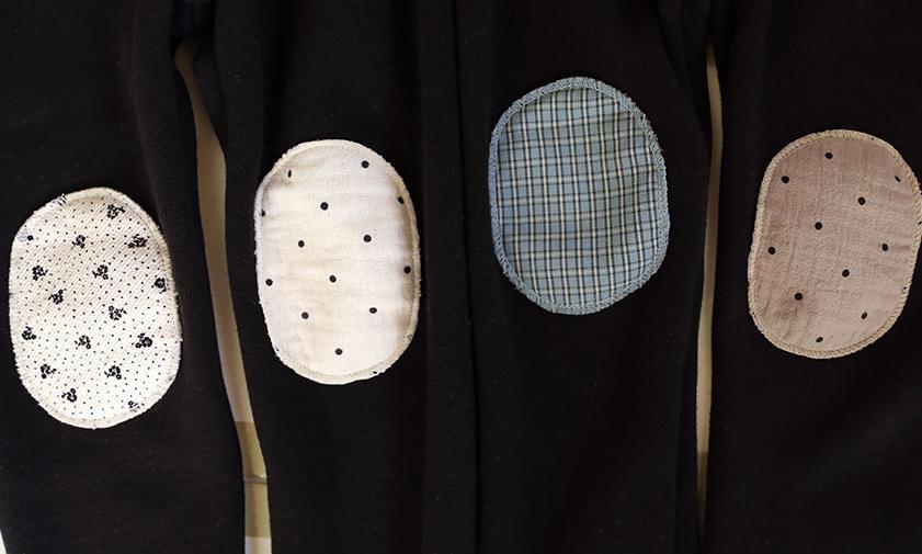 ひざ部分には左右で異なる可愛らしいパッチをあしらい、遊び心をプラスしました。