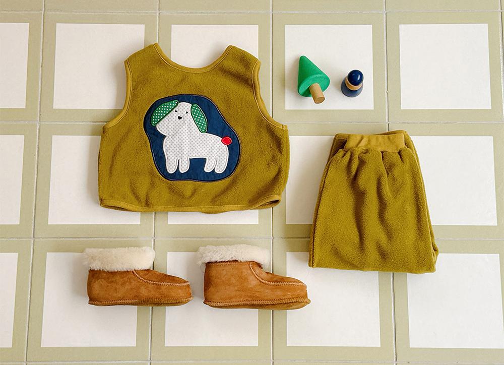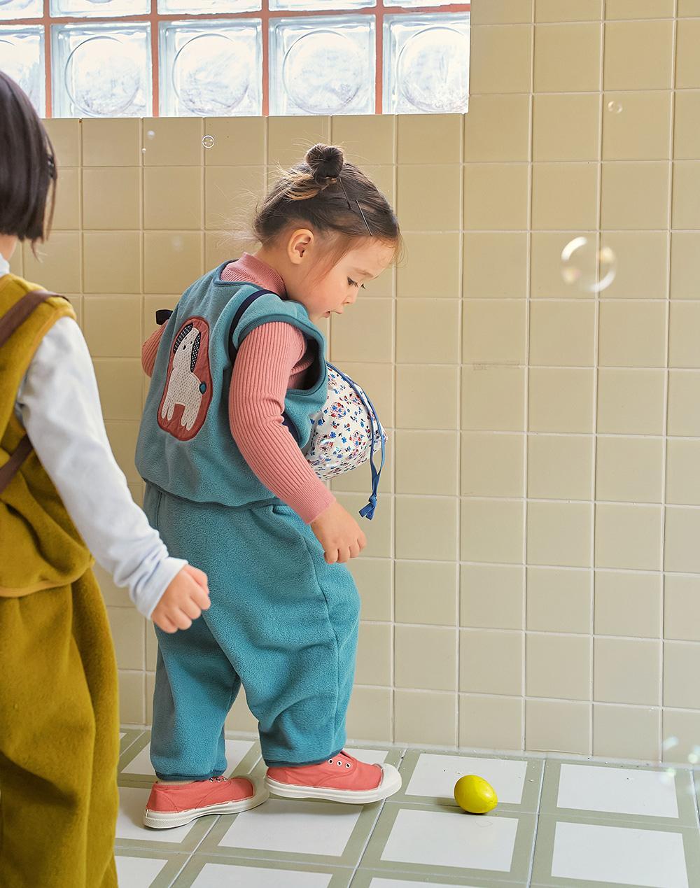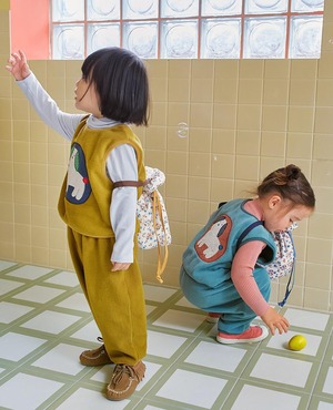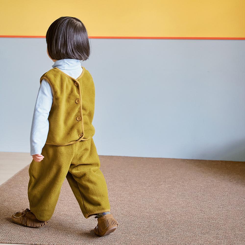 ニットプルオーバーやスウェットシャツと合わせても素敵ですし、同シリーズのカミフリースベストとコーディネートすれば秋冬の登園にもぴったりなあたたかく可愛らしいスタイルが完成します。