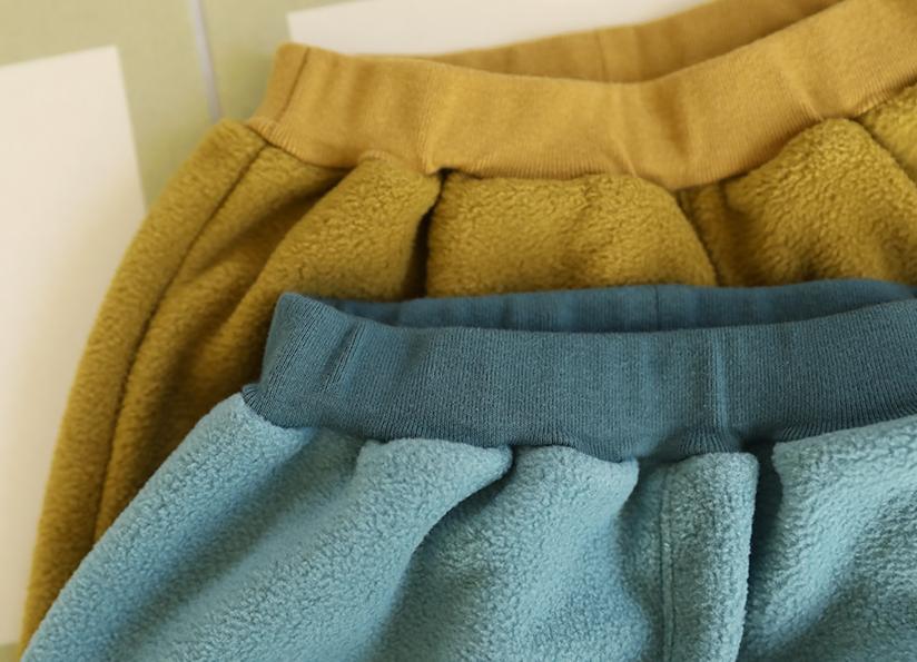 手触りの良いポーラフリース素材を使用し快適なはき心地とあたたかさを両立させました。 裾は伸縮性のある素材でバインディング仕上げにしており、動きやすく快適です。