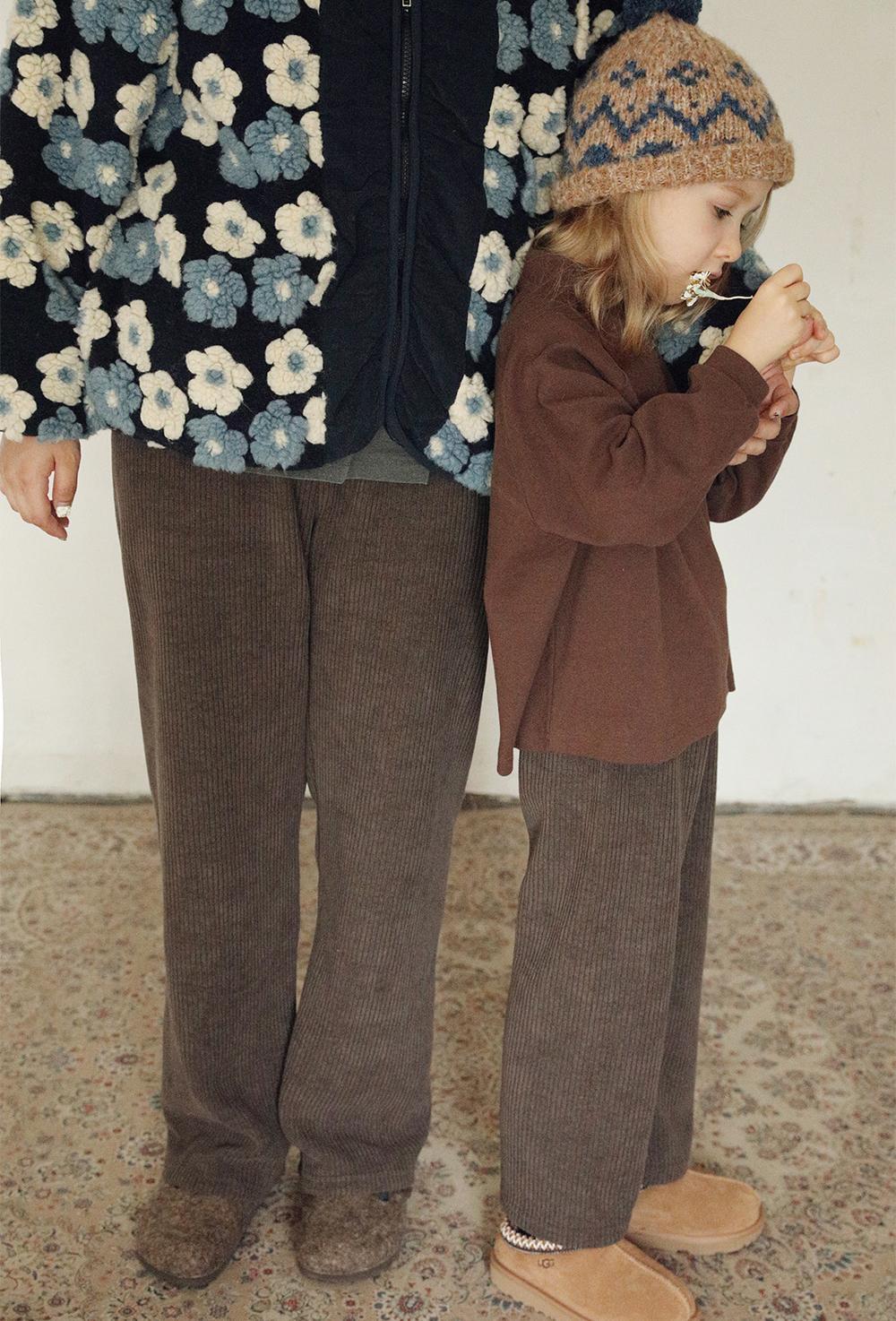 柔らかなリブニット素材で仕立てたこちらのパンツは内側がふわふわの起毛仕様になっており冬でもあたたかく快適に着用いただけます。