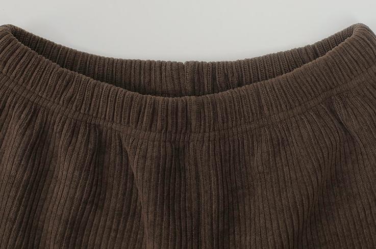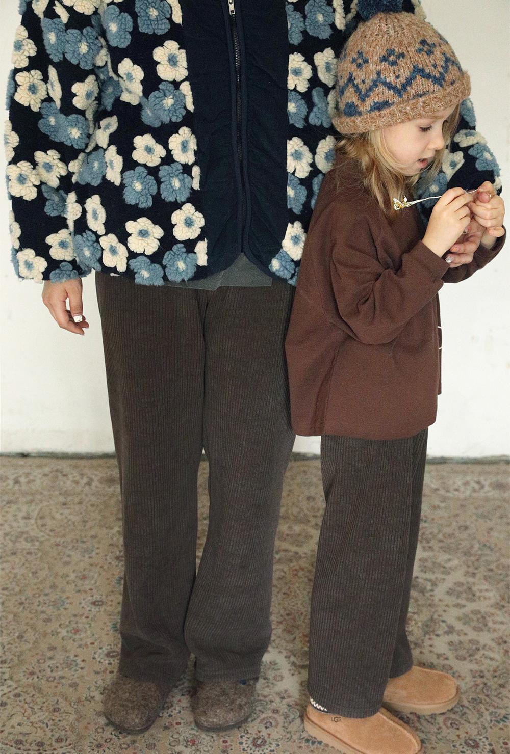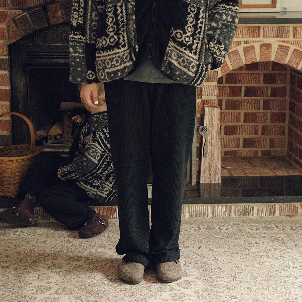 やわらかなリブニット素材で仕立てたカーメルパンツは内側がふんわりとした起毛になっており冬でもあたたかく快適に着用できます。