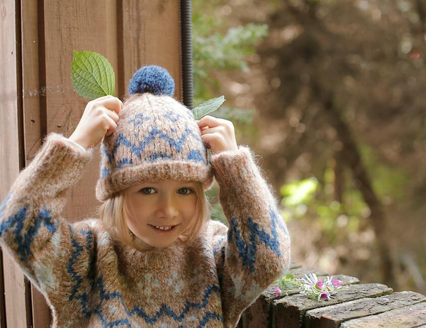 配色でアクセントをつけたノルディックスタイルのパターンがかわいらしさと洗練された印象を両立させています。