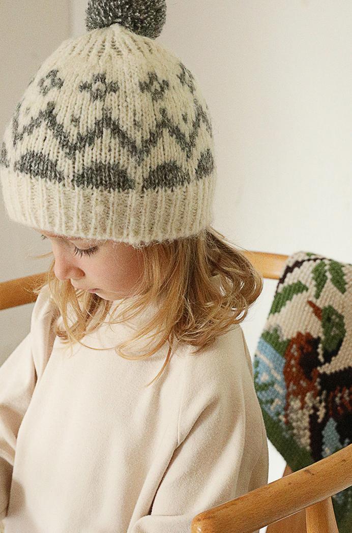 かわいらしいノルディックスタイルのパターンが魅力のニット帽です。