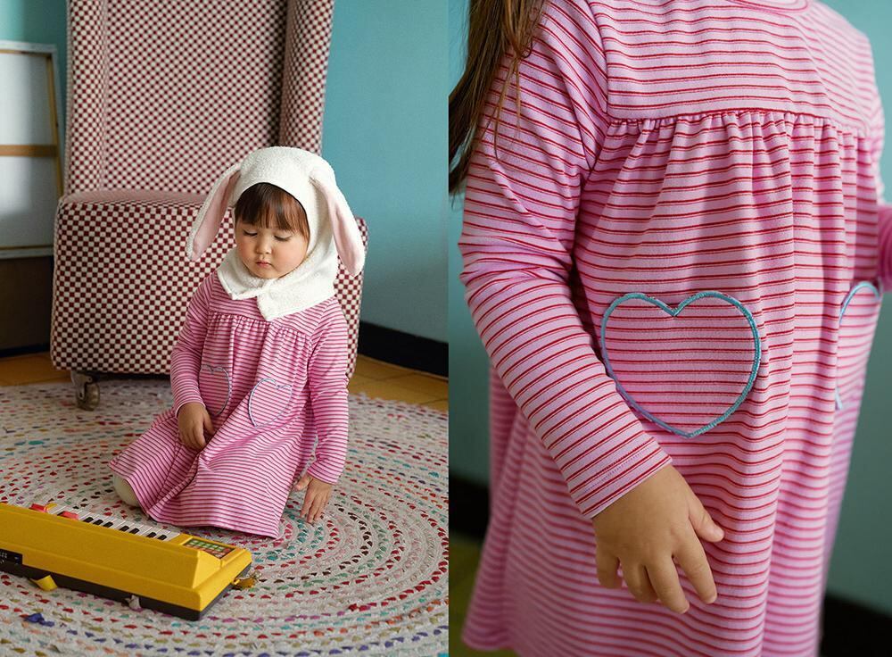フロントの両サイドには小さなハート刺繍のポケットを添えてさりげない可愛らしさをプラスしました。