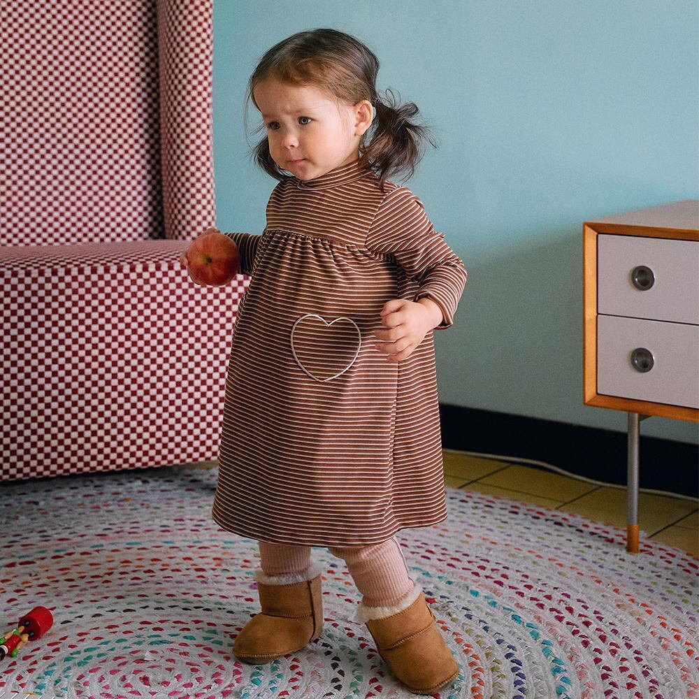 首まわりは程よい高さのハーフタートル仕様で、タートルネックが苦手なお子さまでも快適に着ていただけます。