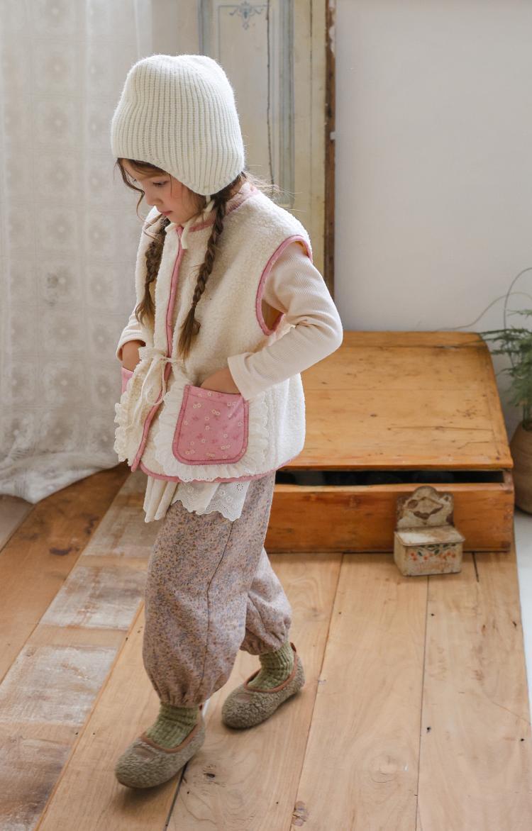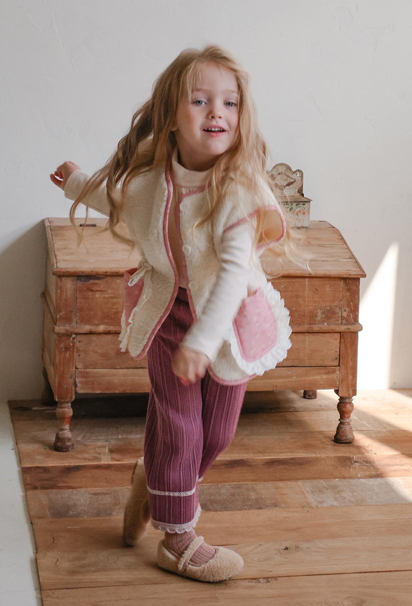 ふんわりとしたモコモコ素材があたたかく包み込む冬のベストです。