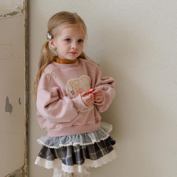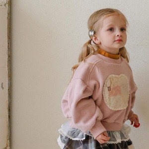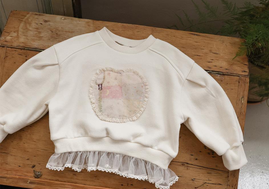 ネック部分には繊細なレースをあしらい、前面にもレースパッチを施してガーリーな雰囲気に仕上げました。