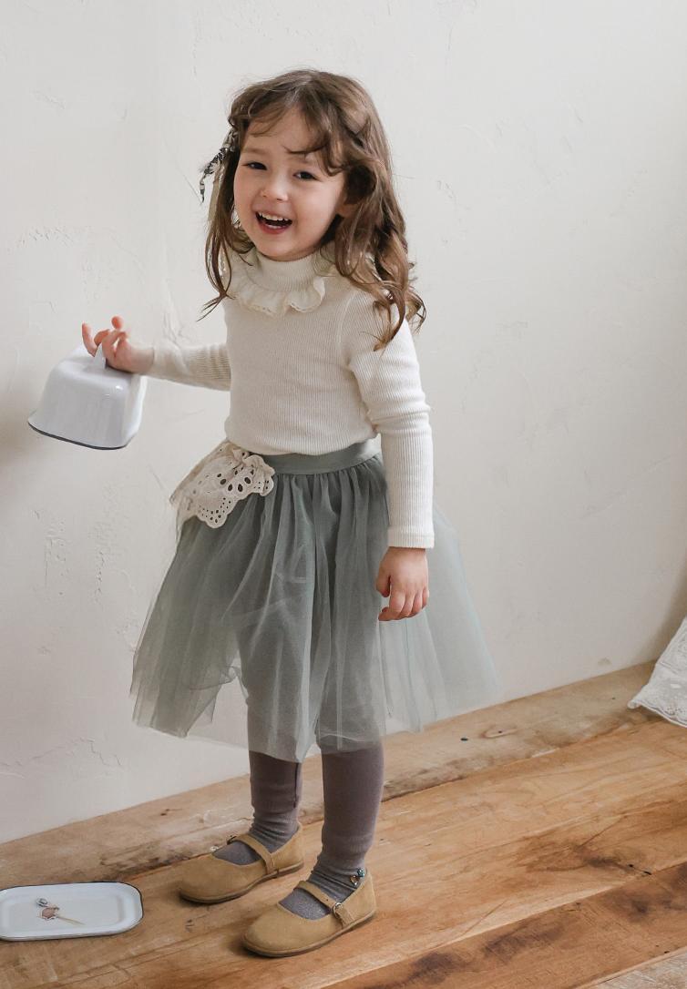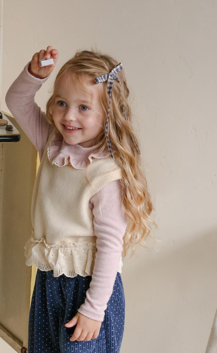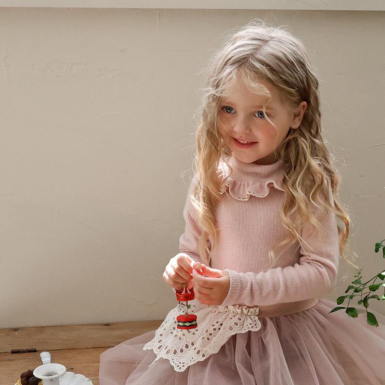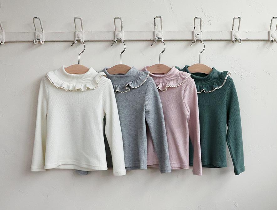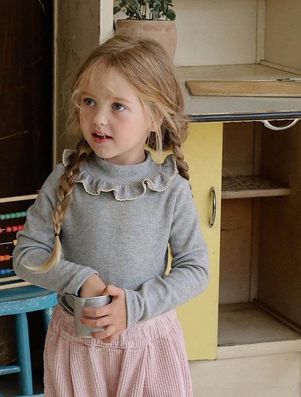 首元にはフリルをあしらいシンプルな中にガーリーな可愛らしさを添えています。