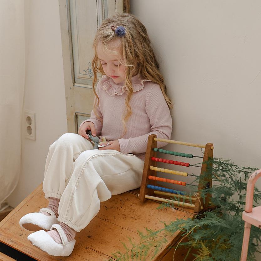 スカートやジャンパースカートとの相性も良く、冬のコーディネートを華やかに仕上げてくれる一着です。