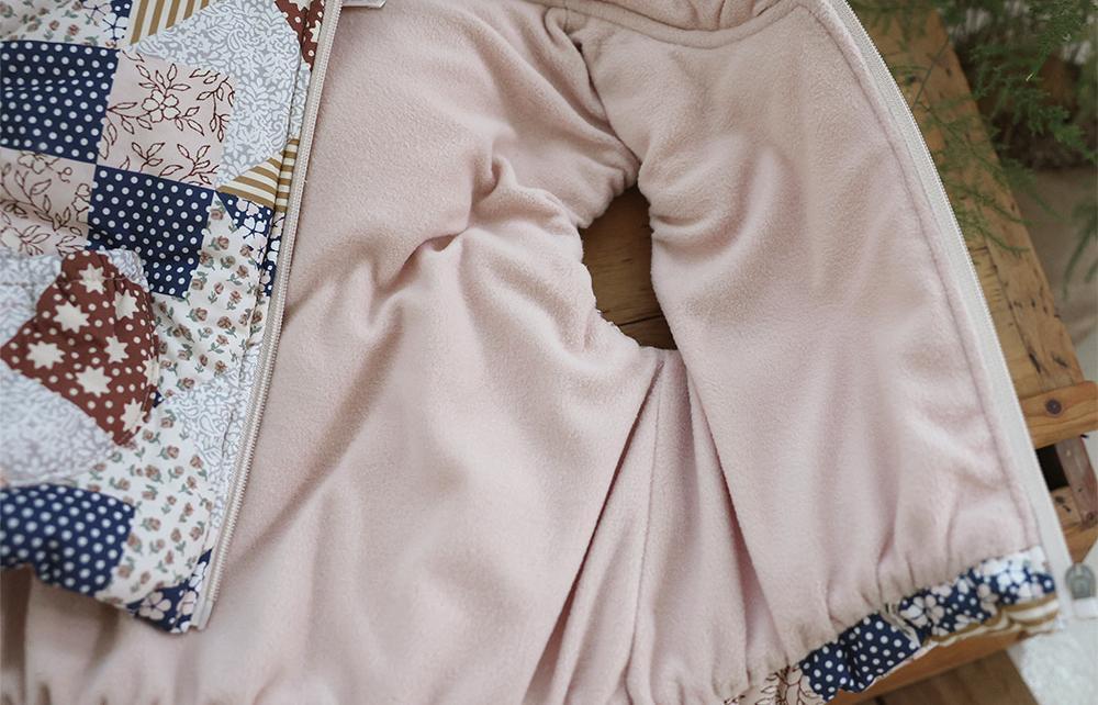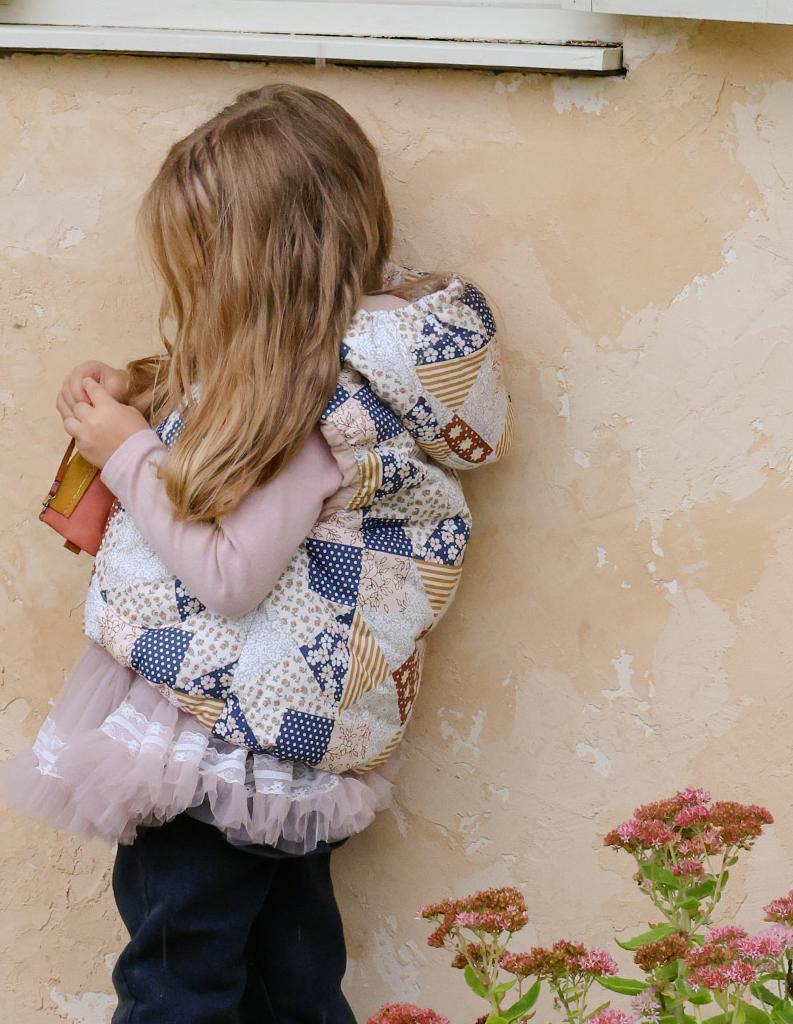 異素材を組み合わせたようなパッチワークデザインが目を惹くあたたかなベスト。