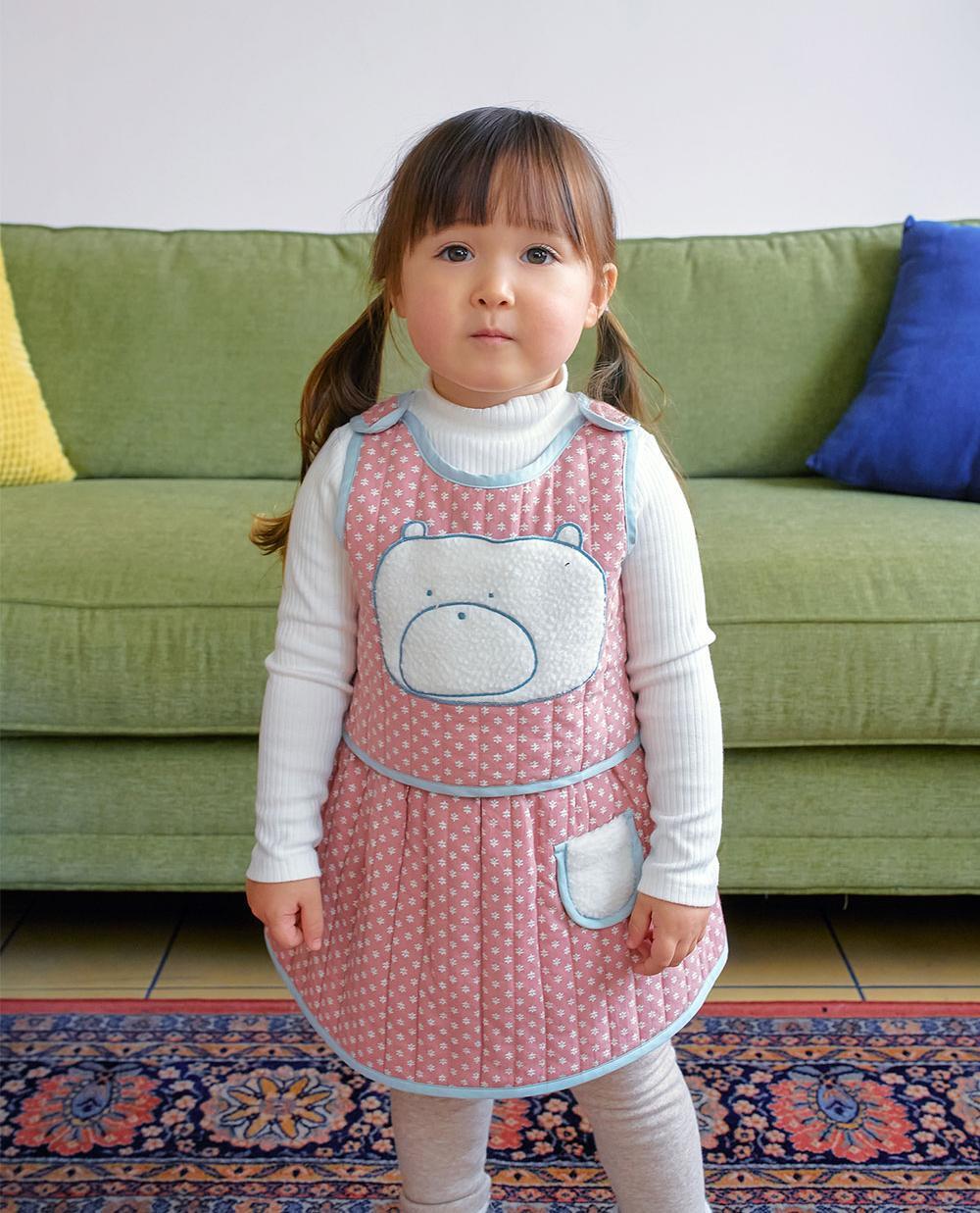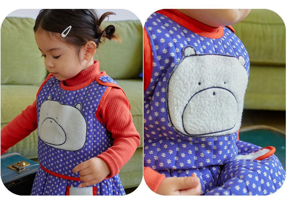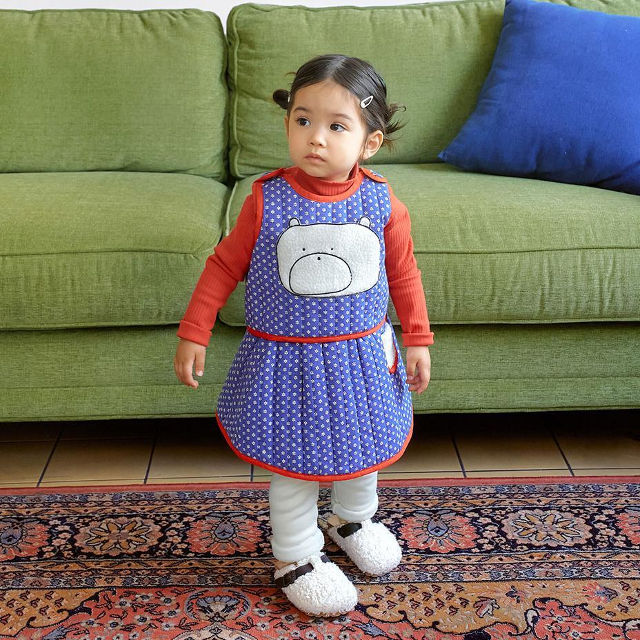 前面いっぱいにあしらわれたふわふわのくまさんポケットで小さなカイロがすっぽり入るサイズ感で、寒い日の外出にもぴったりです。