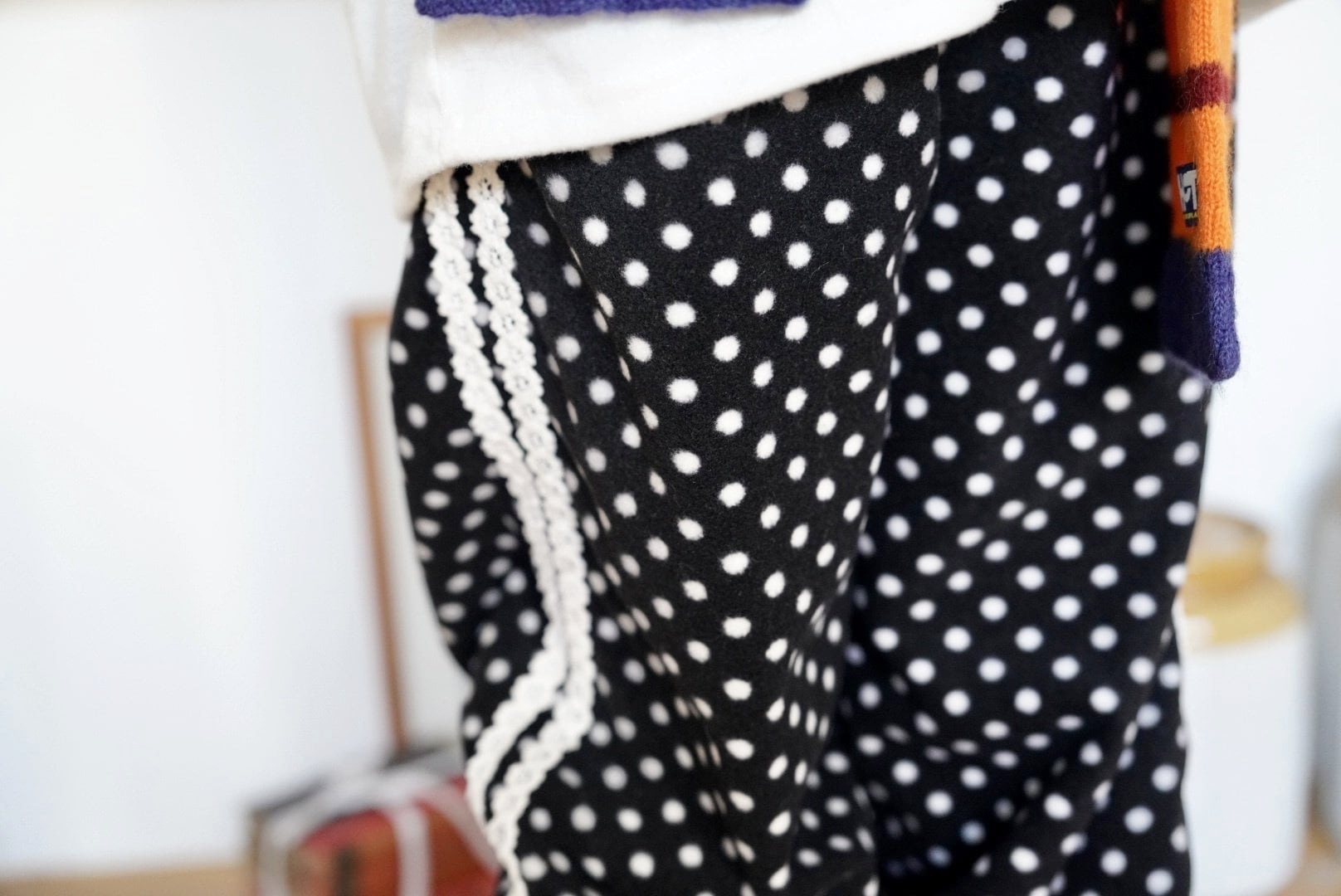 あたたかみのある素材で仕立てたドット柄のジョガーパンツです。