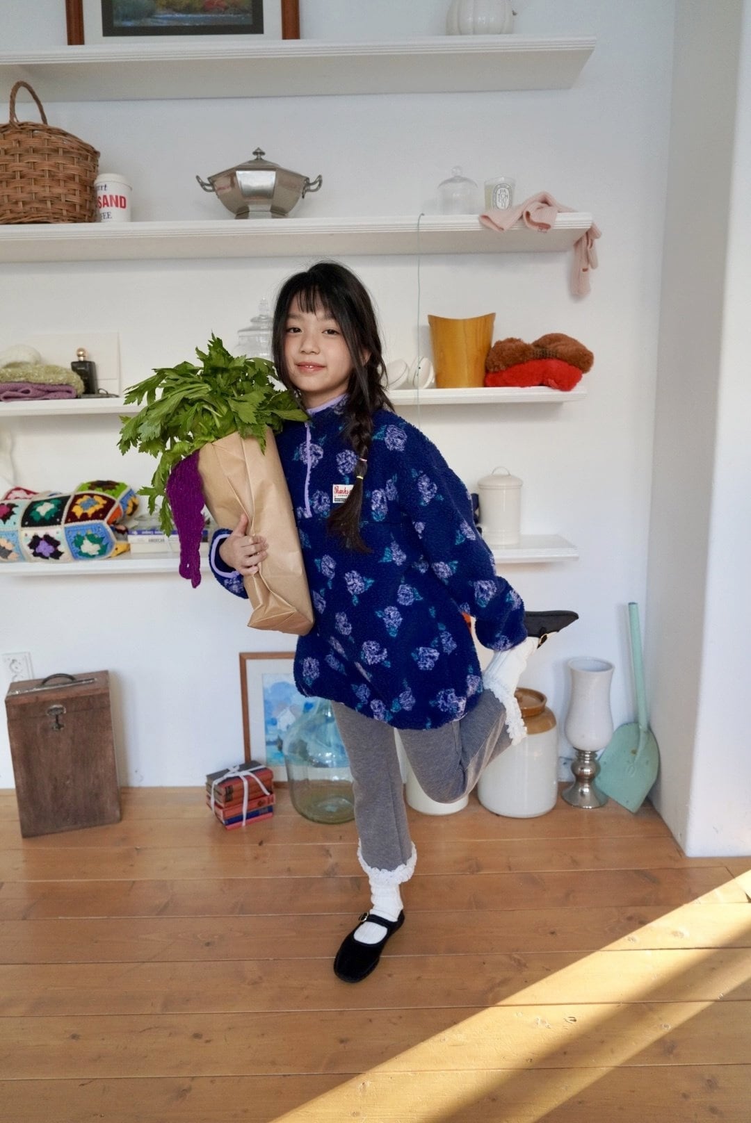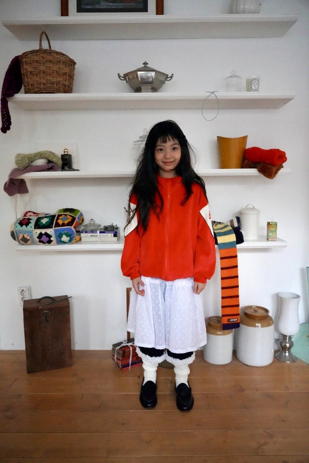 色んなトップスと靴下を合わせて冬のコーディネートをやさしく華やかに仕上げてくれる一着です。
