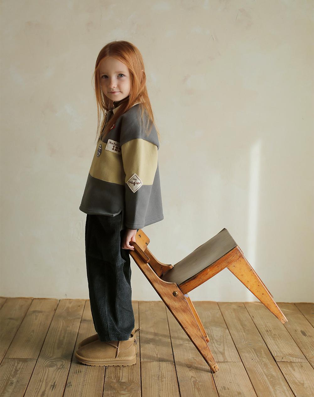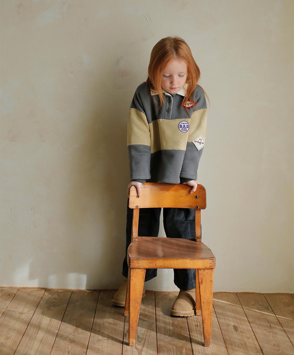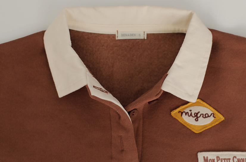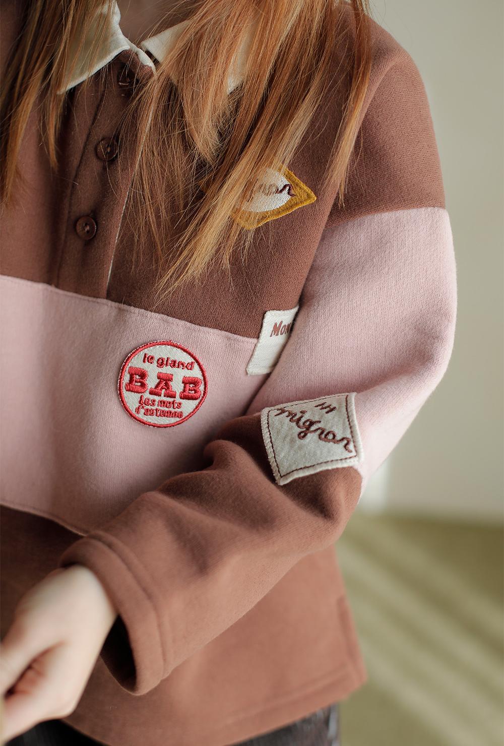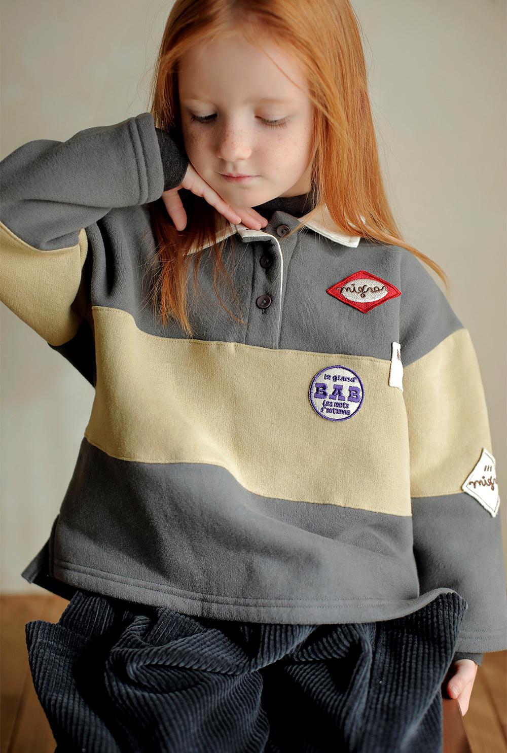 襟元の配色デザインがクラシックなアクセントとなりフロントにさりげなく施された刺繍パッチが表情を添え上品なフレンチカジュアルスタイルを完成させます。