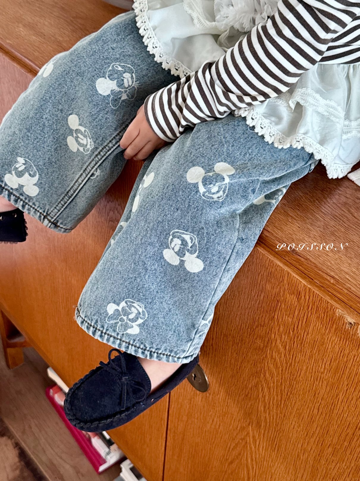 «予約»«ジュニアサイズあり»«poisson» ミッキーデニムパンツ