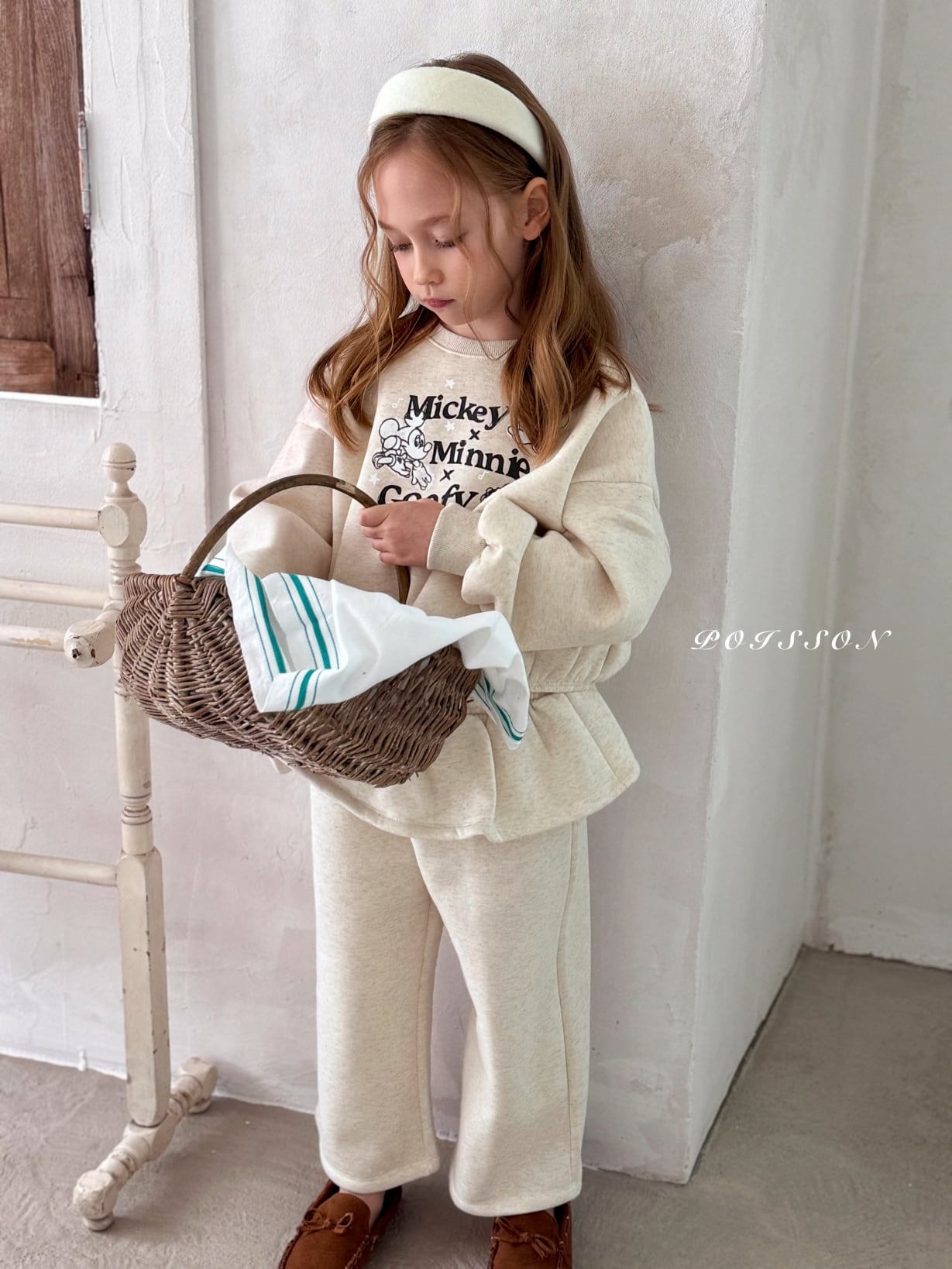 かわいらしいディズニーキャラクターのプリントと、フリル付きパンツがポイント。