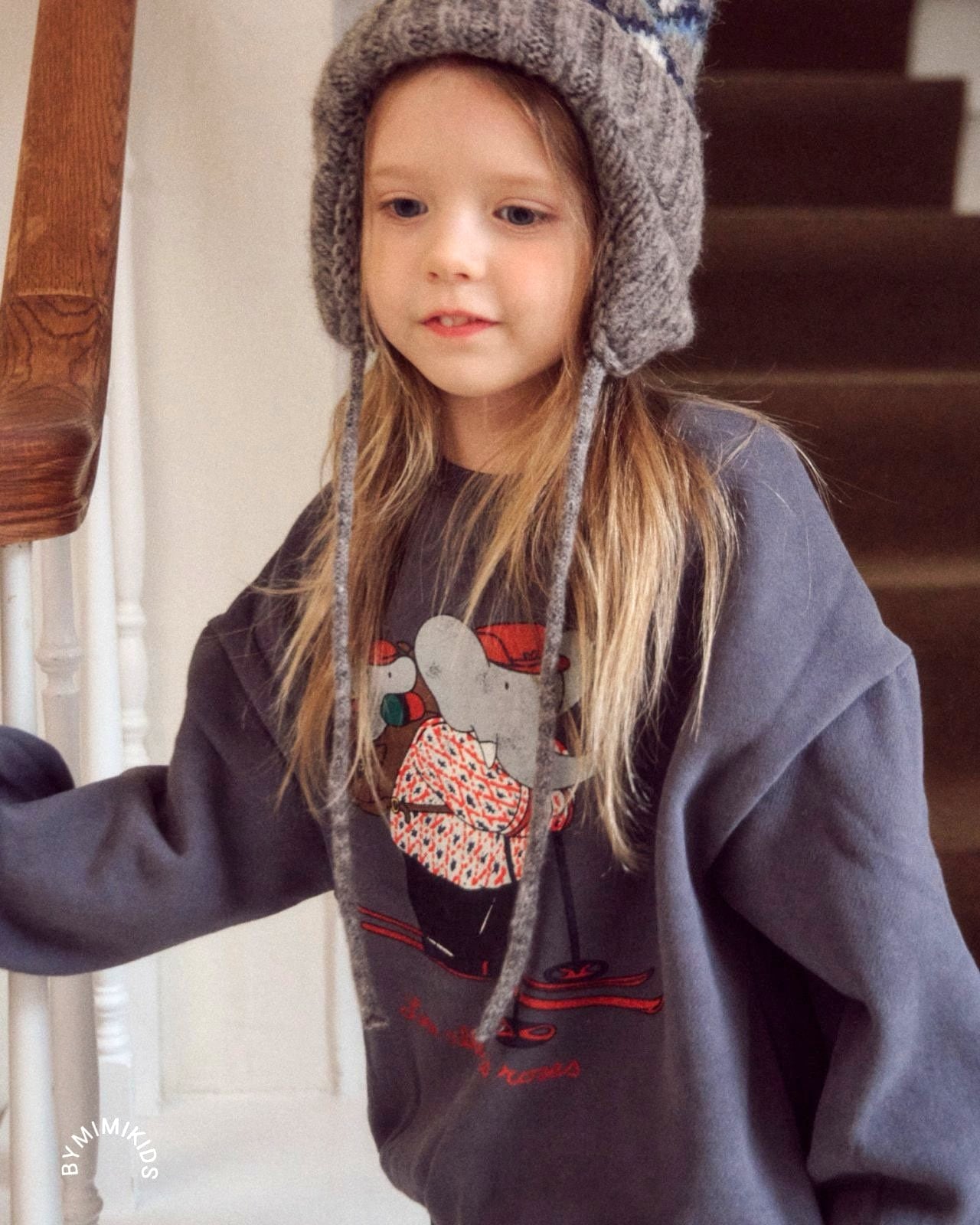 これから季節にぴったりな暖かいコットン素材でユニークなイラストがキュートなスウェットです。