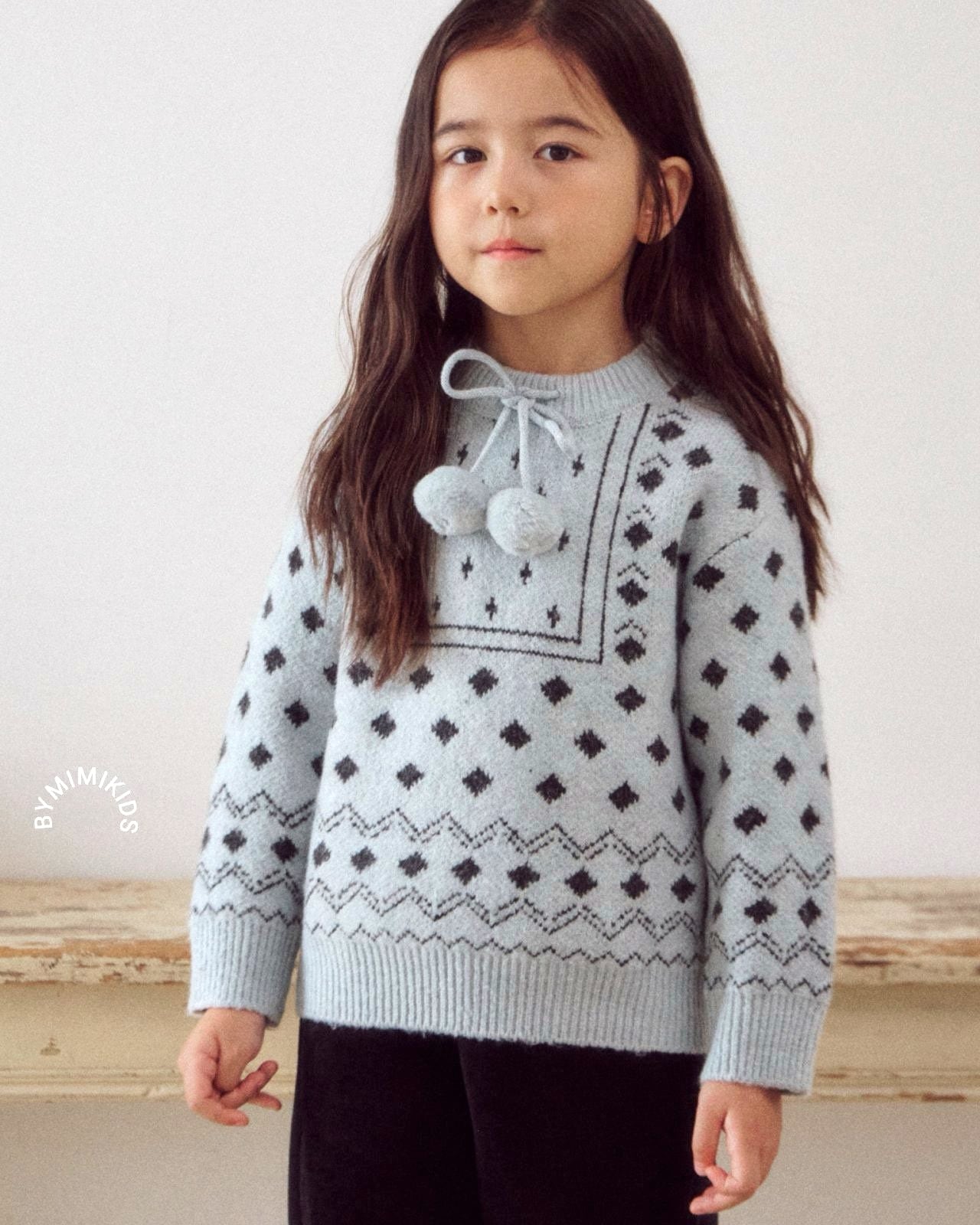 ジャガード柄が季節感のある表情を生みネックに添えられたポンポンが愛らしいアクセントになります。