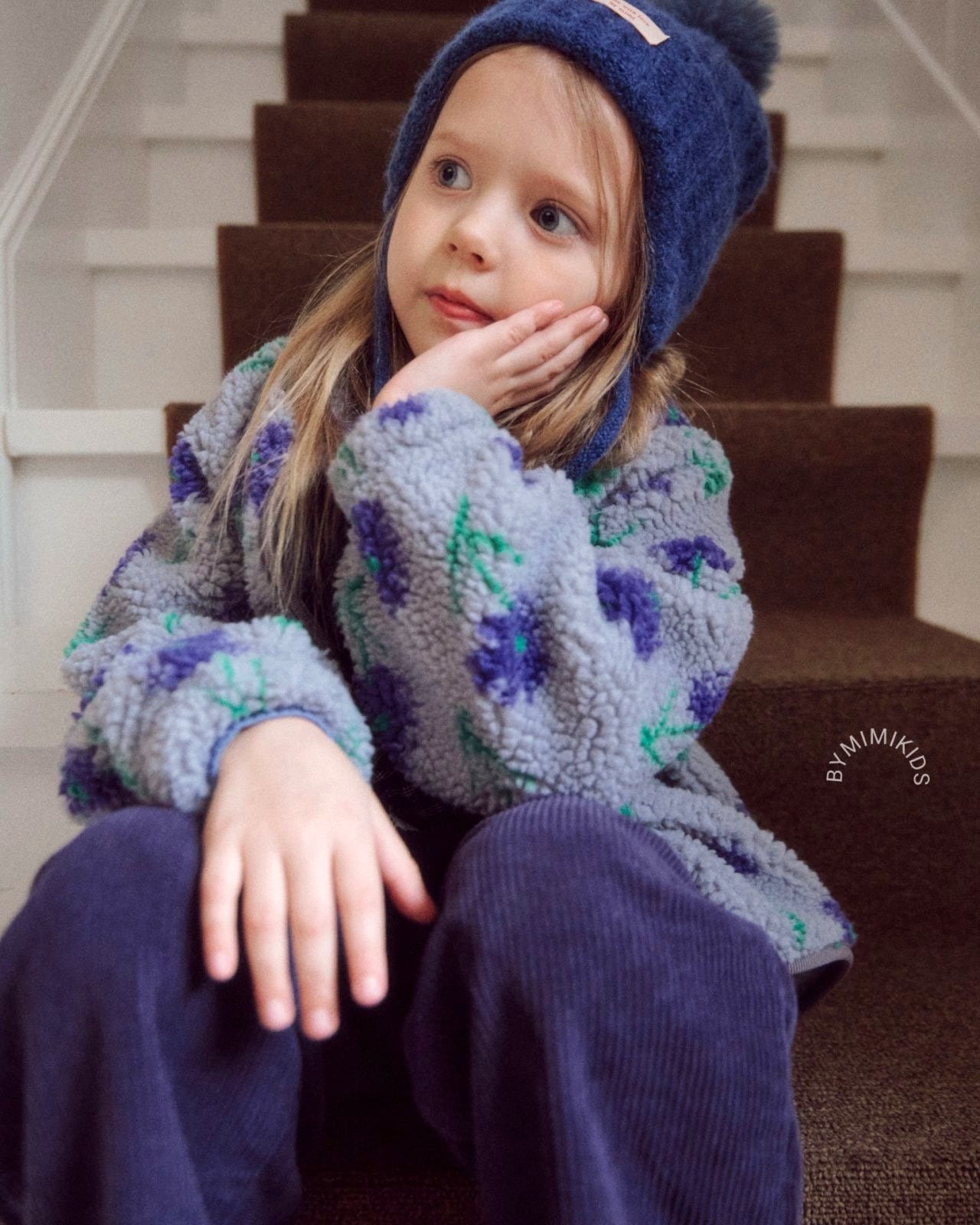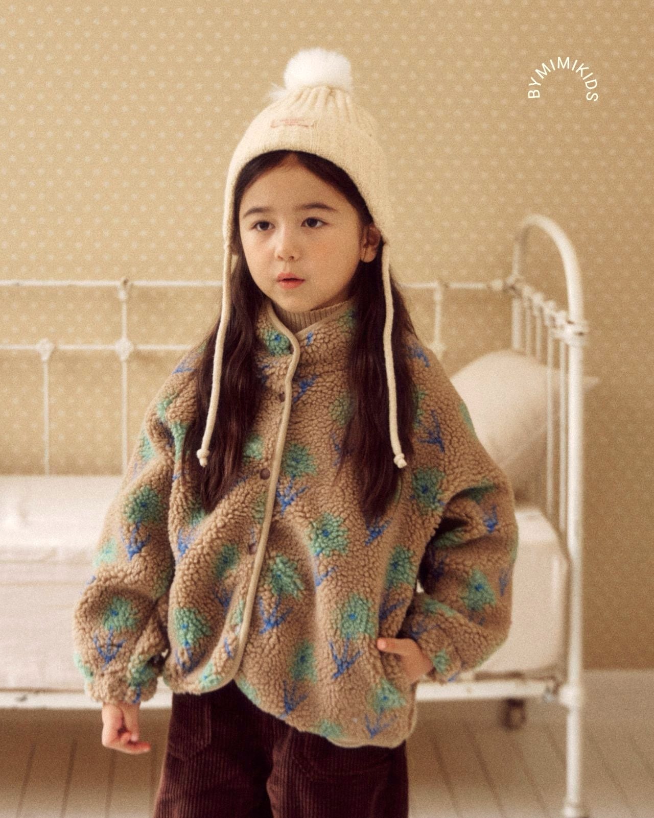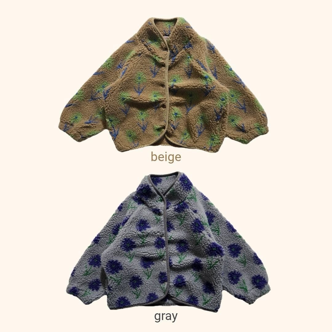コットン100%のお花柄モコモコ素材が冬の装いにやさしい温もりを添えるざっくりとしたジャケットです。