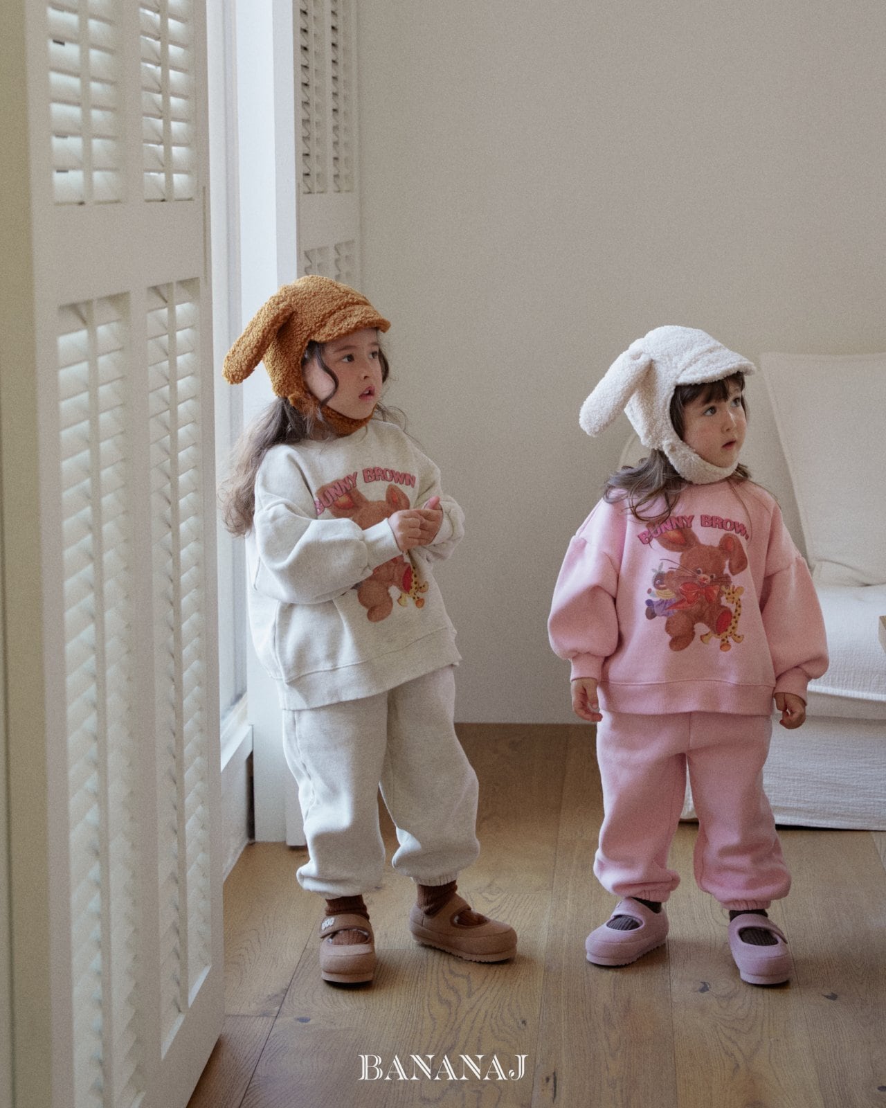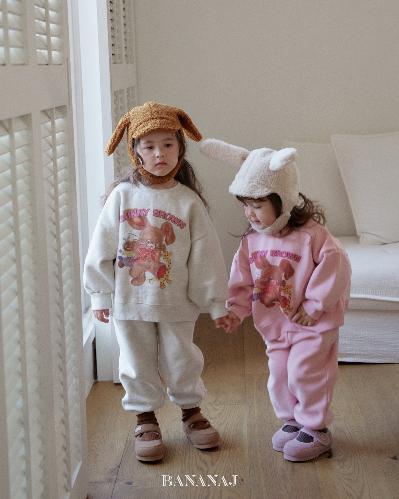 かわいいうさぎのキャラクターがポイントのあたたかい素材のセットアップです。