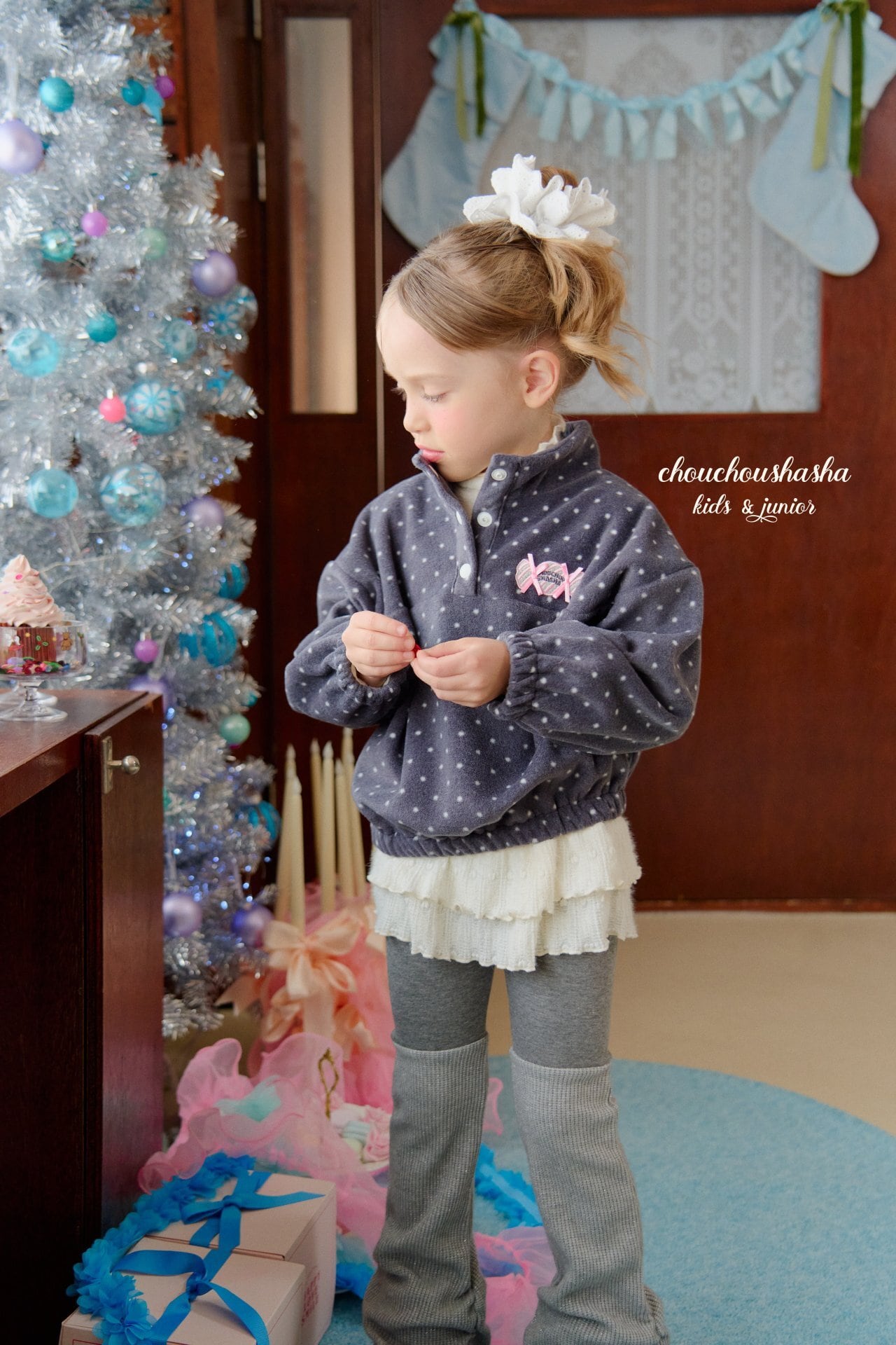 ハート柄のレースはやわらかな起毛感があり肌当たりも心地よくネックラインはハイネック仕様で首元まであたたかくお過ごしいただけます。