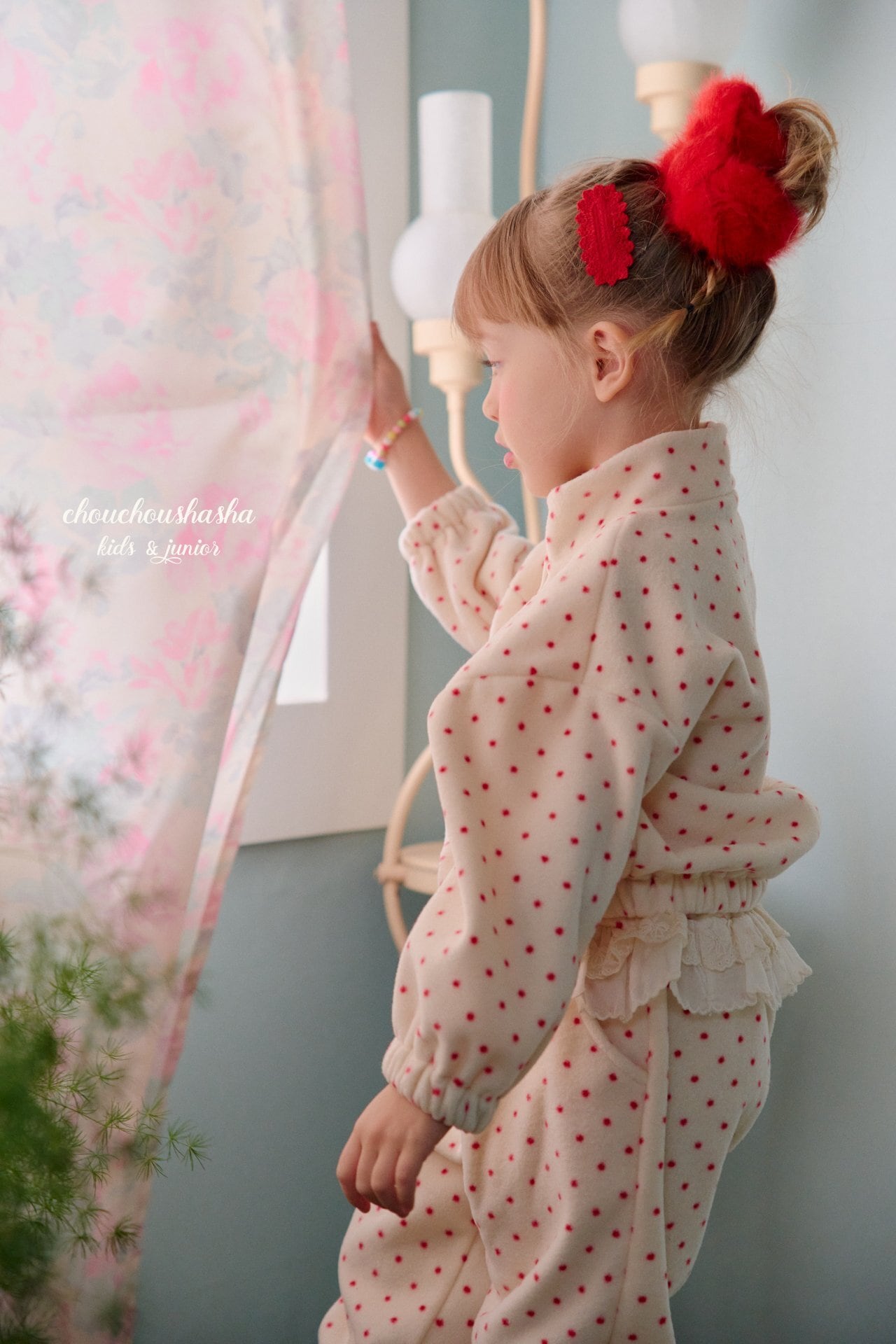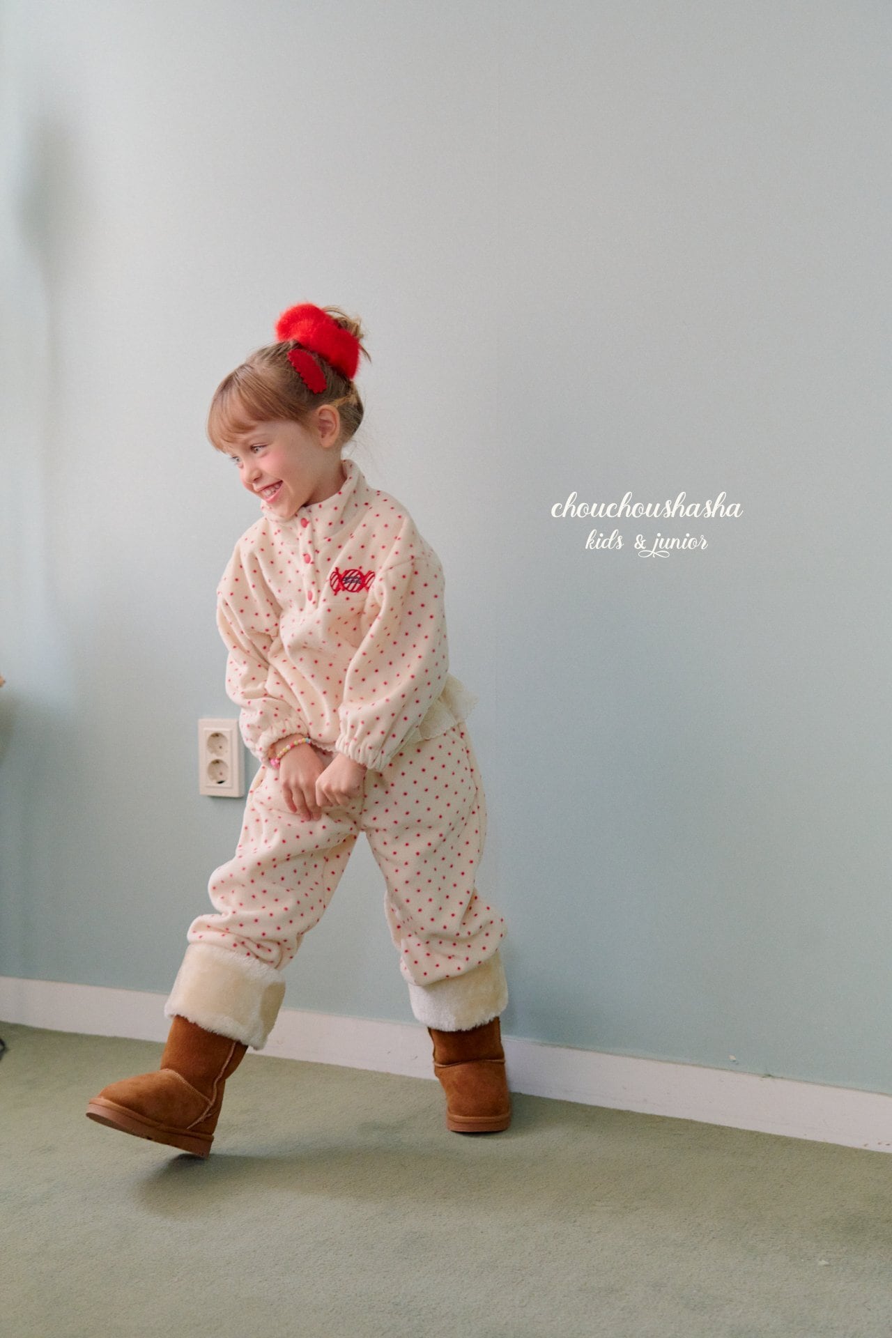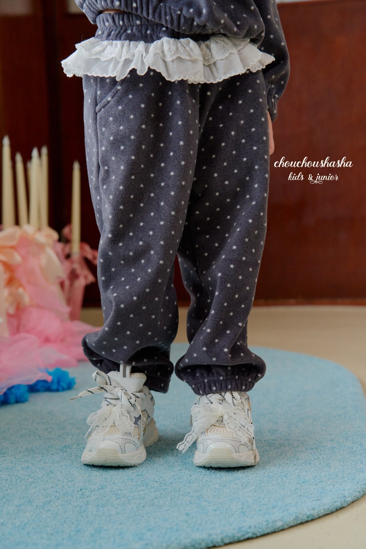 「キャンディドットフリース」とセットでコーディネートすれば、統一感のある愛らしいスタイルが完成します。