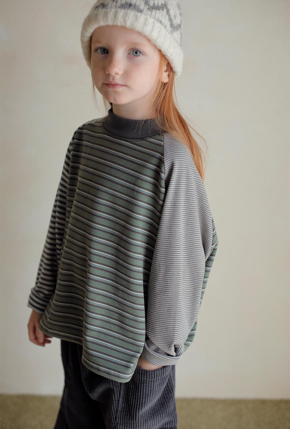 ユニークなボーダー柄とカラーの組み合わせが印象的なトップスです。
