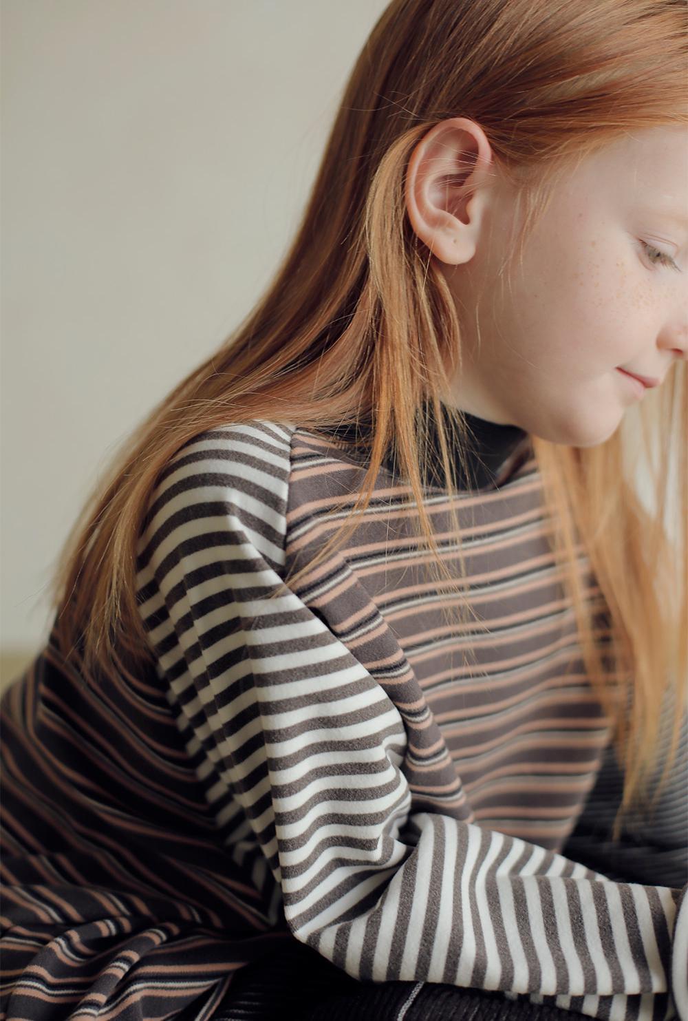ルーズなラグランデザインにアンバランスなマルチストライプの組み合わせがカジュアルでありながらトレンディーな雰囲気を添え着るだけでコーデのポイントになります。