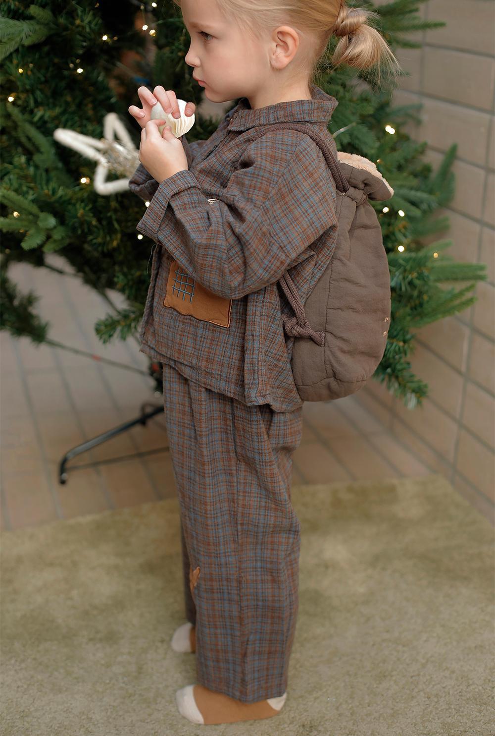 軽くやわらかな風合いとヴィンテージ感のある細かなチェック柄に愛らしいパッチを添えクリスマスイブの夜を思わせるぬくもりを感じられる一本です。