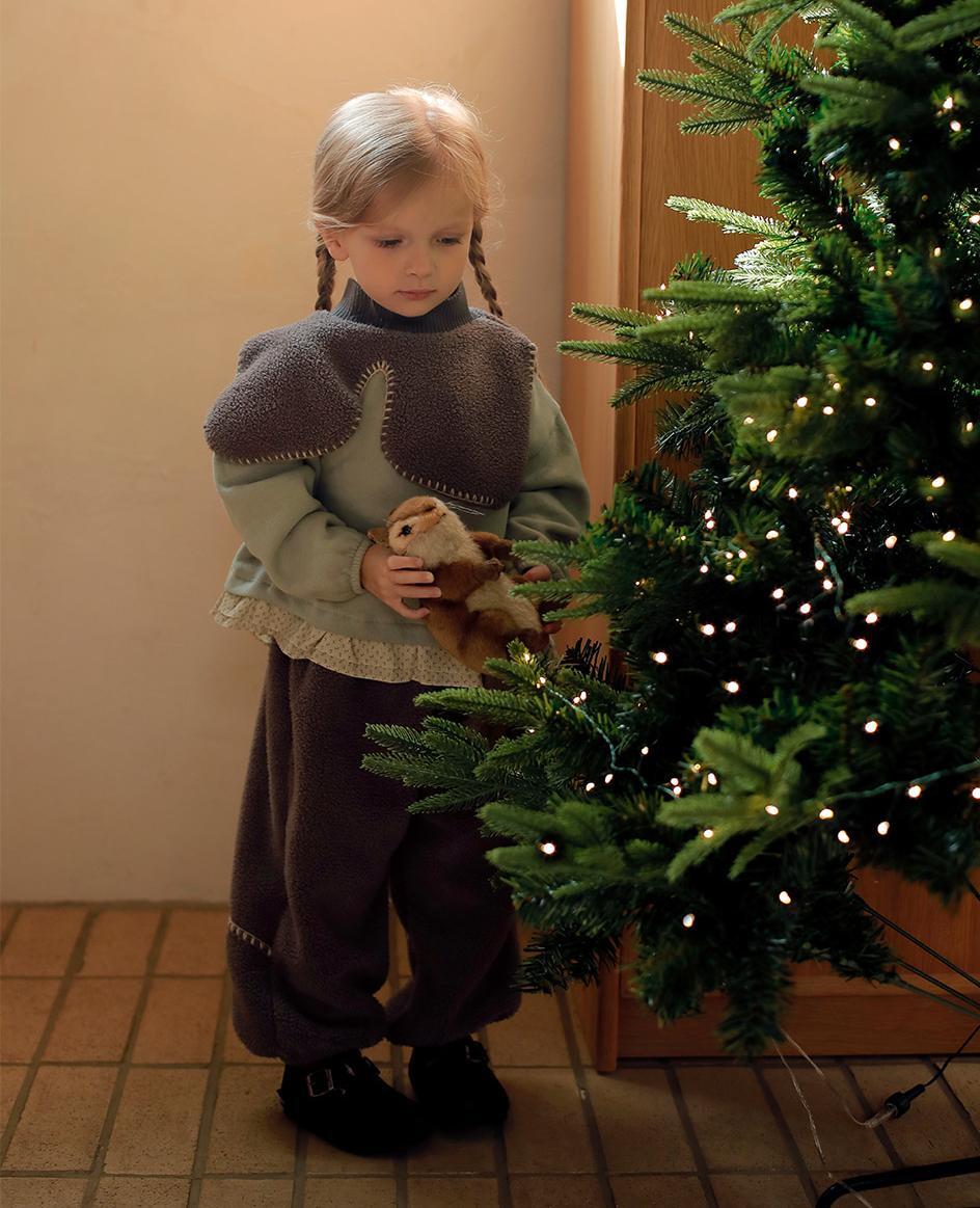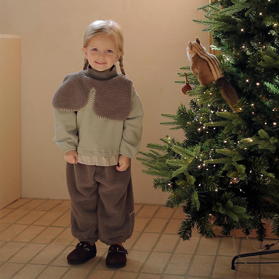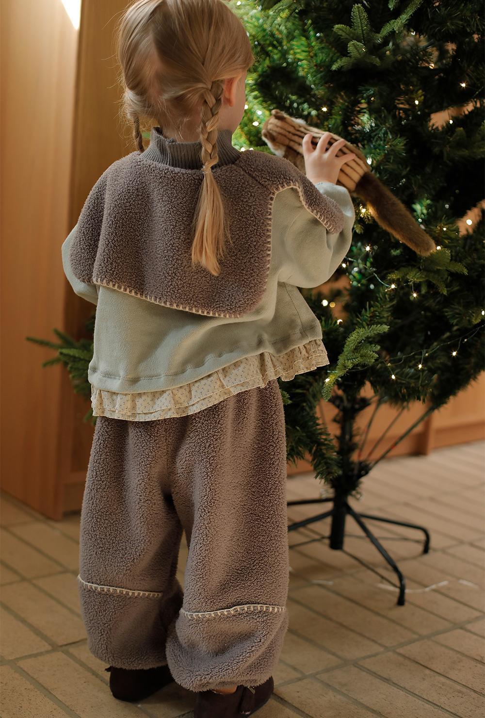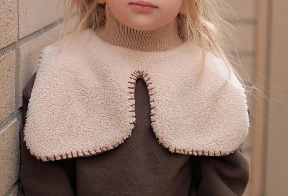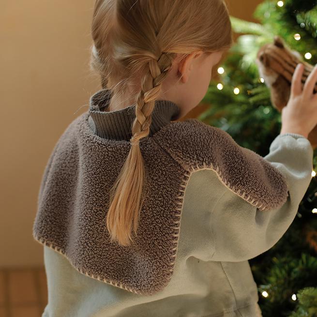 小さな首元をあたたかく包み込むモコモコ素材のケープです。
