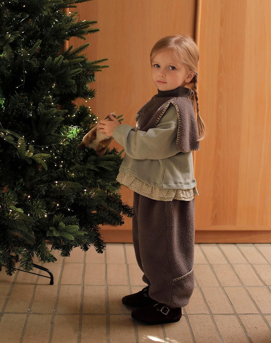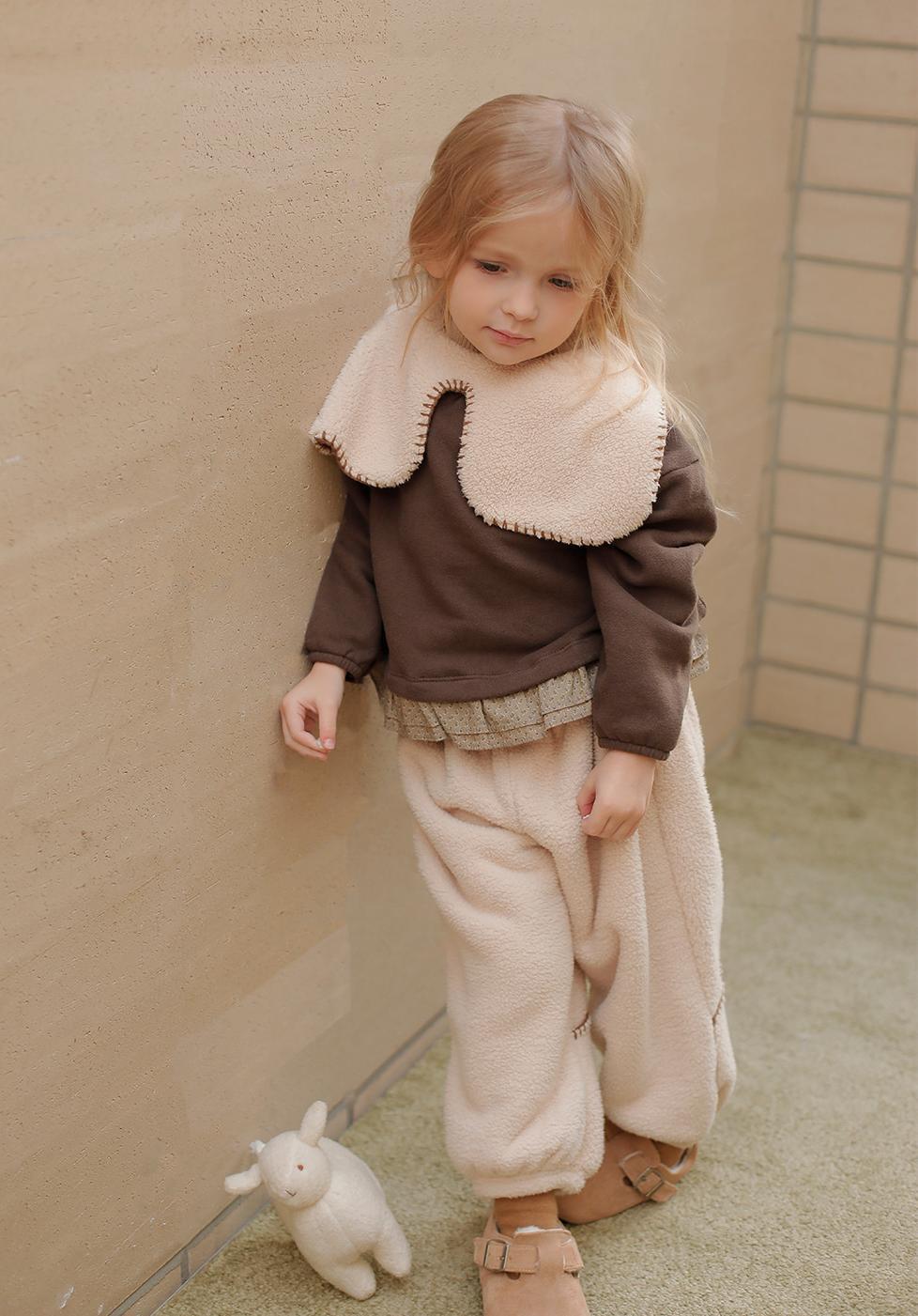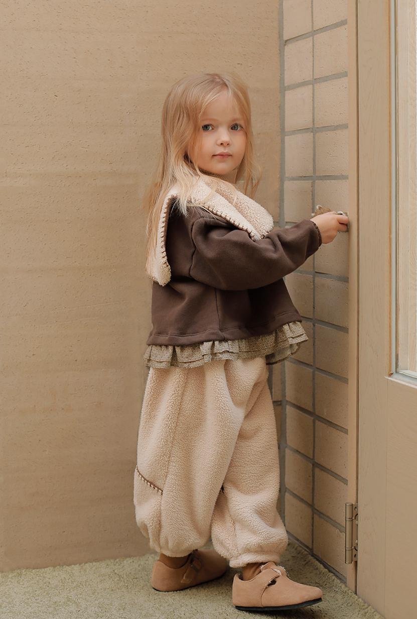 小さな首元をあたたかく包み込むモコモコ素材のケープです。