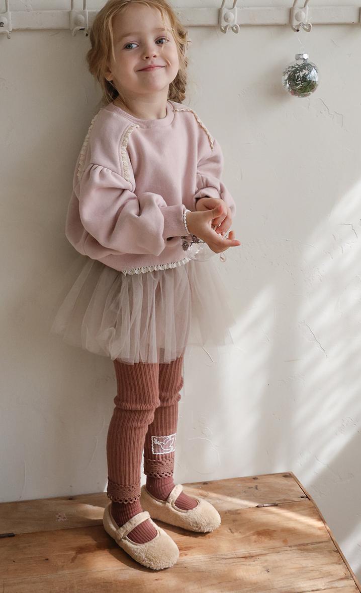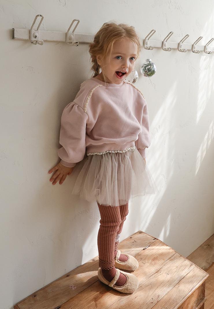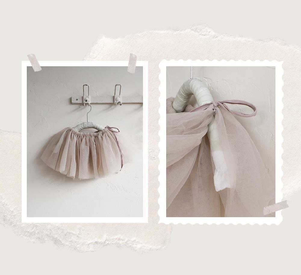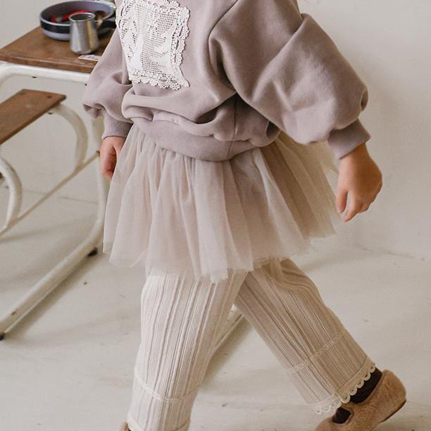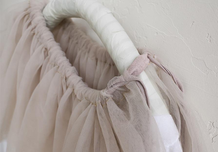 ウエストはギャザーをたっぷり寄せた紐仕様でリボン結びがキュートです。