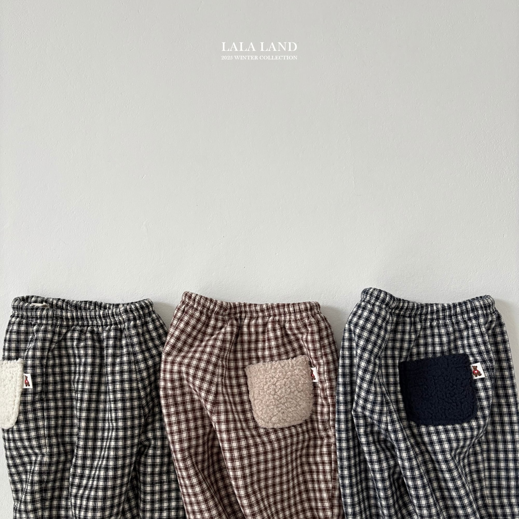 暖かいコットン素材を使用したチェック柄のストレートイージーパンツ。