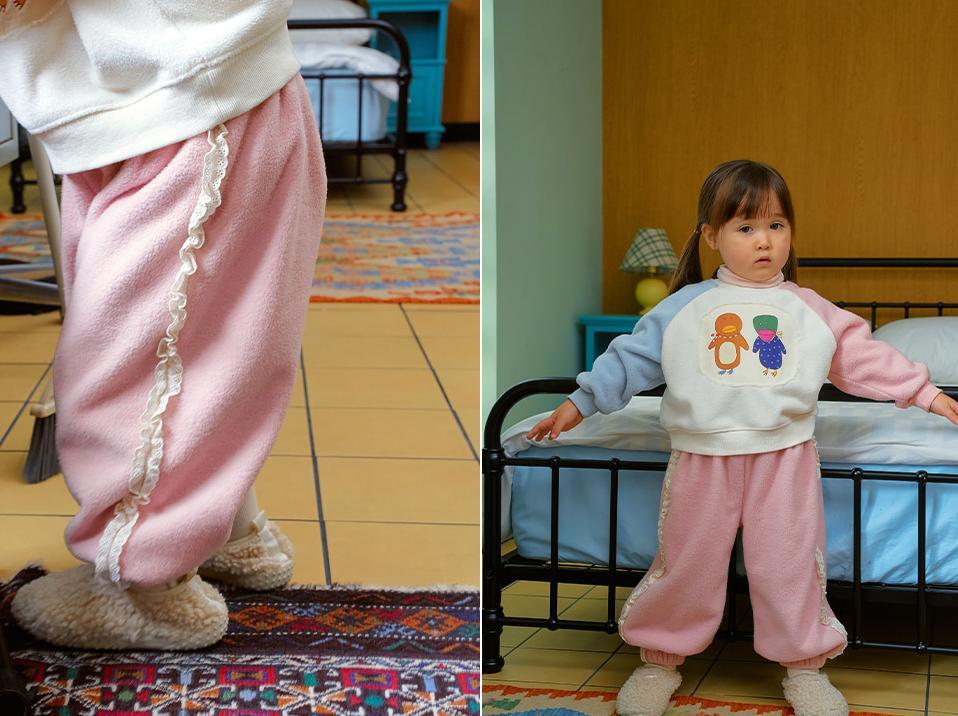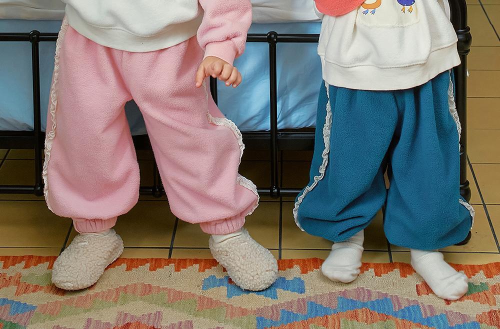 サイドラインにはコットンレースのフリルをあしらい可愛らしさを添えました。