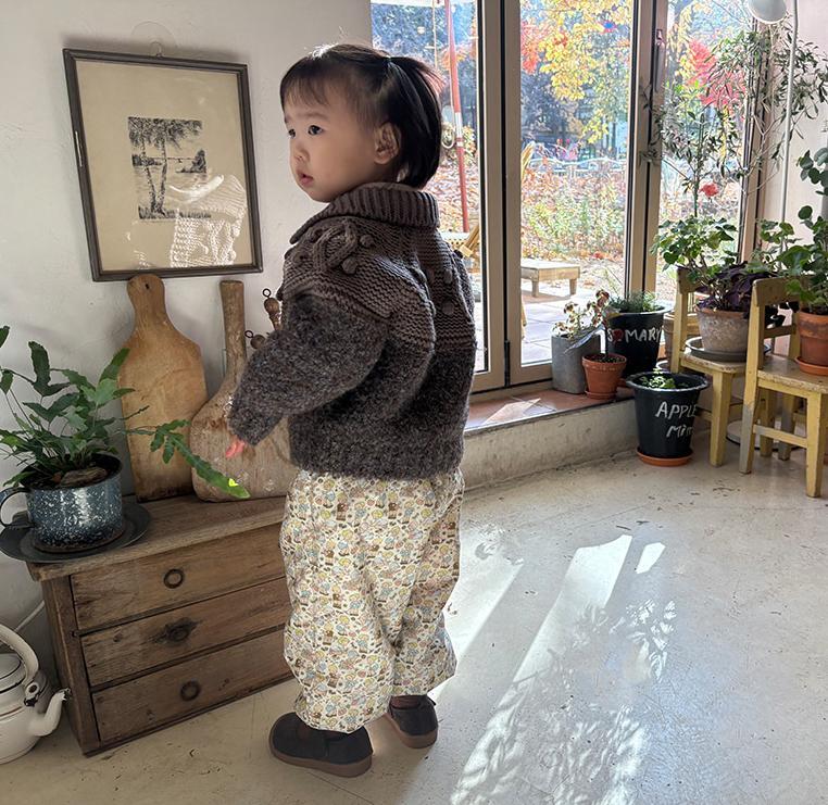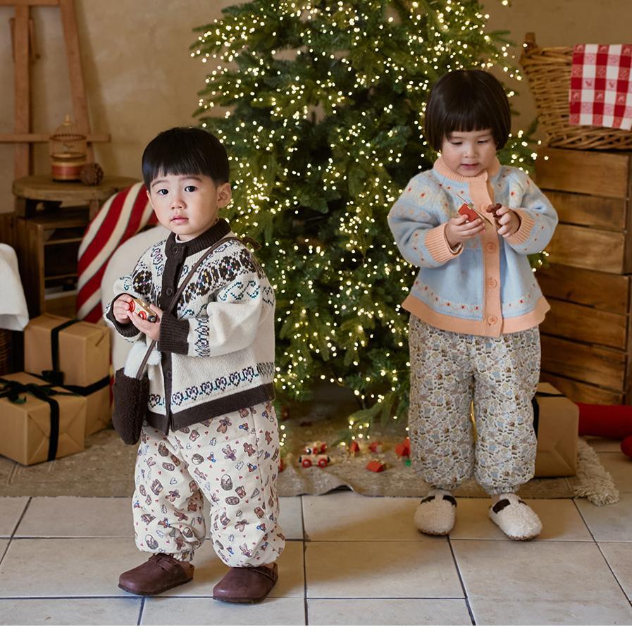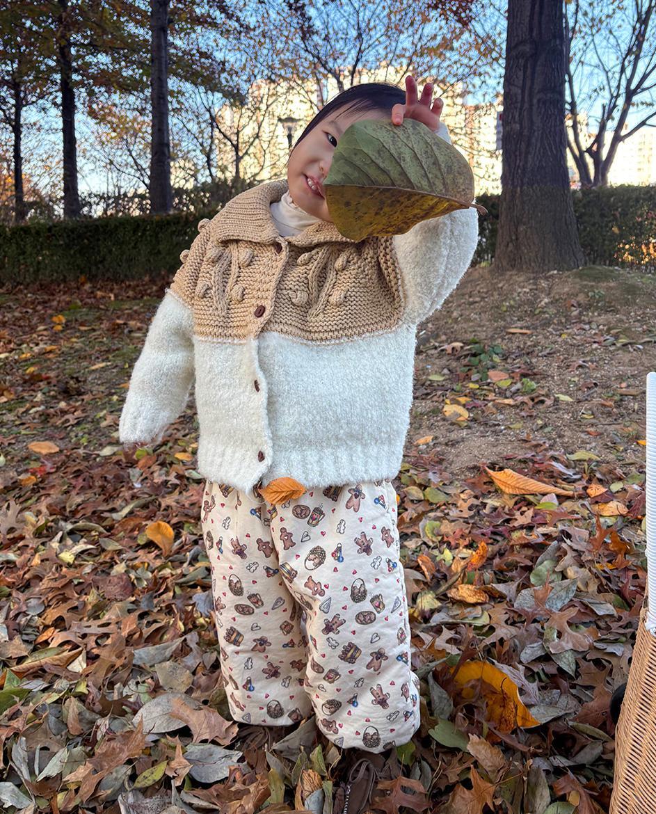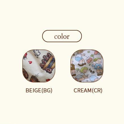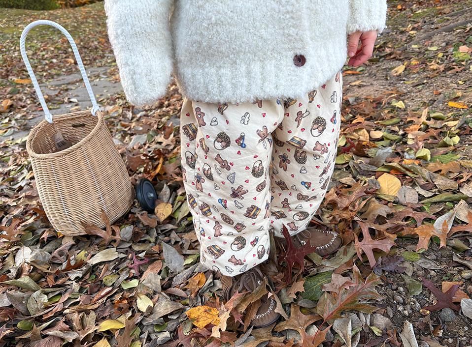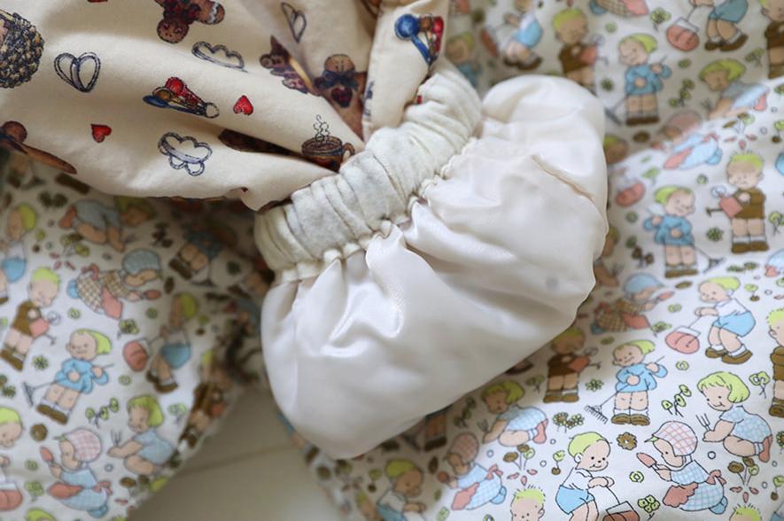 お庭仕事を楽しむ子どもたちやジンジャーマンクッキーのプリントをほどこした軽やかなコットン生地にふんわりとした中綿があたたかな一本です。