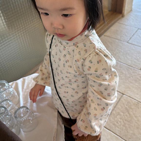 肩にはさりげないギャザーを入れてふんわりとした印象を添えています。