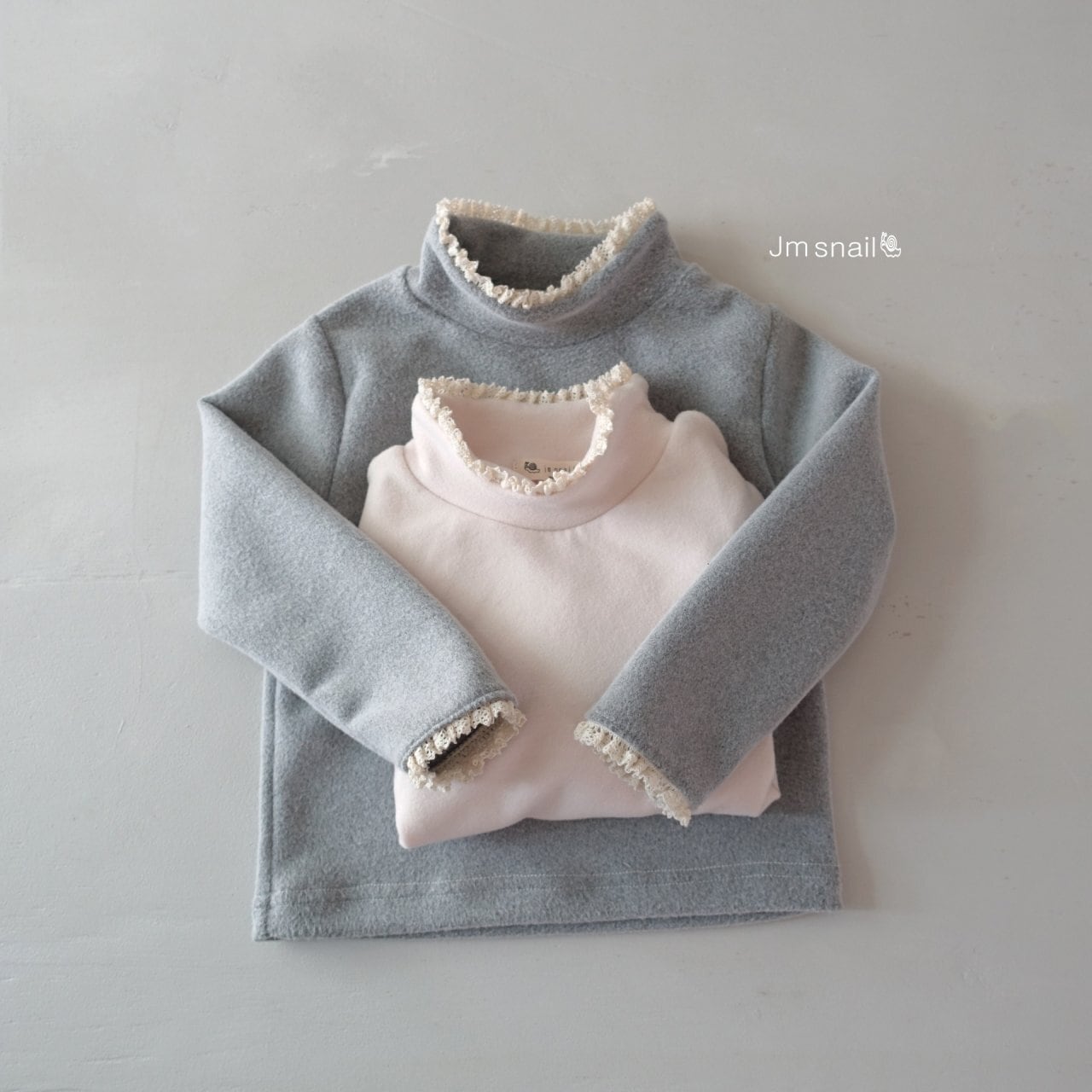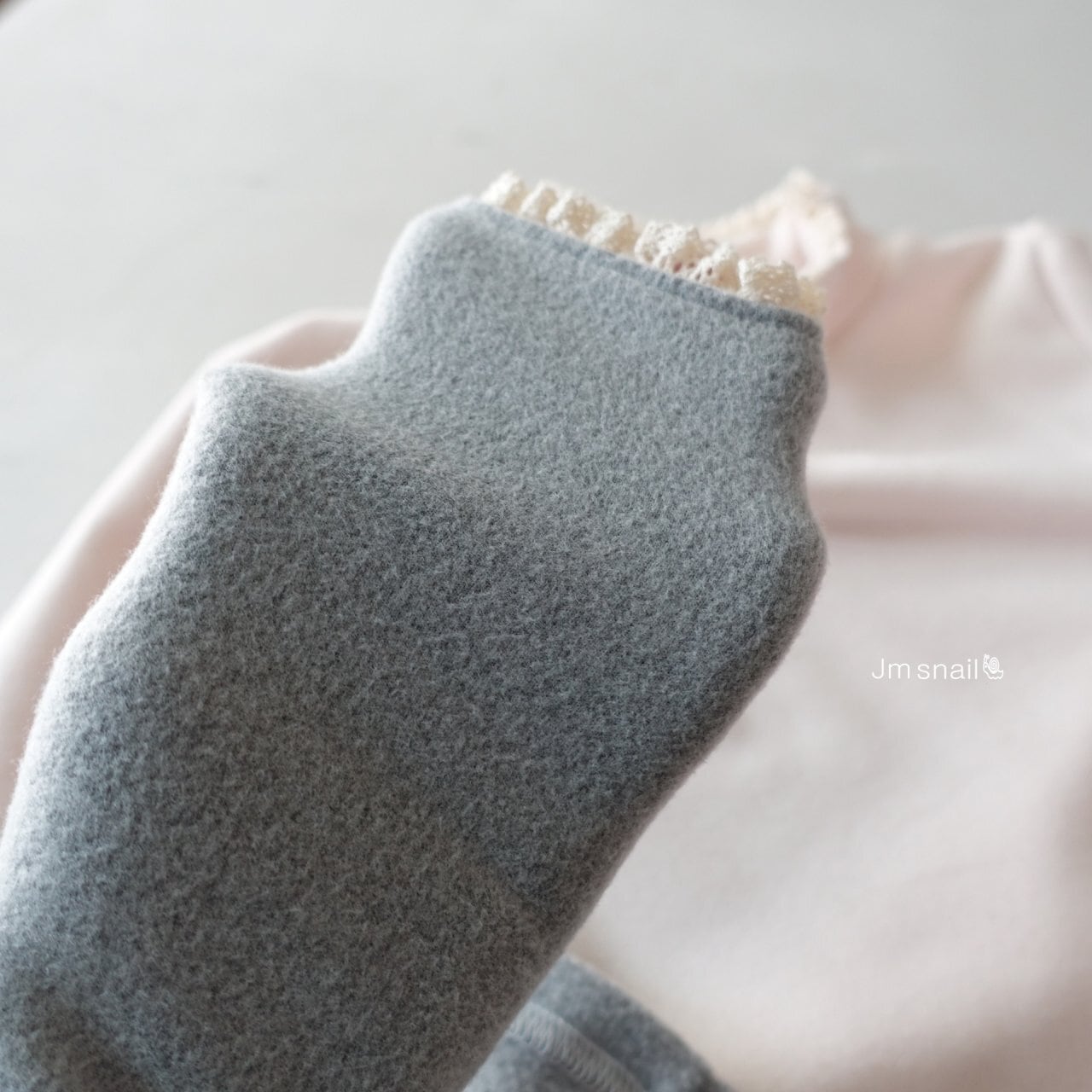 ネックと袖には繊細なレースをあしらいほんのりとガーリームードを添えています。