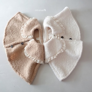 冬の外出にかわいさとあたたかさを添えてくれるふんわりとした素材のケープです。