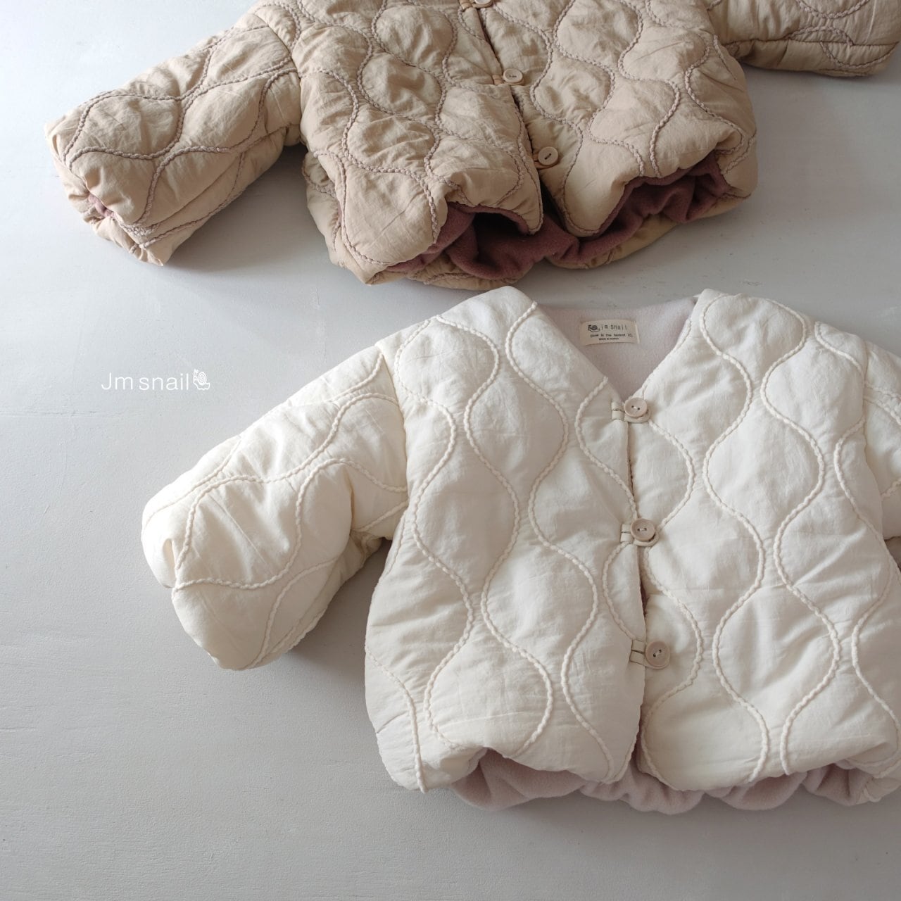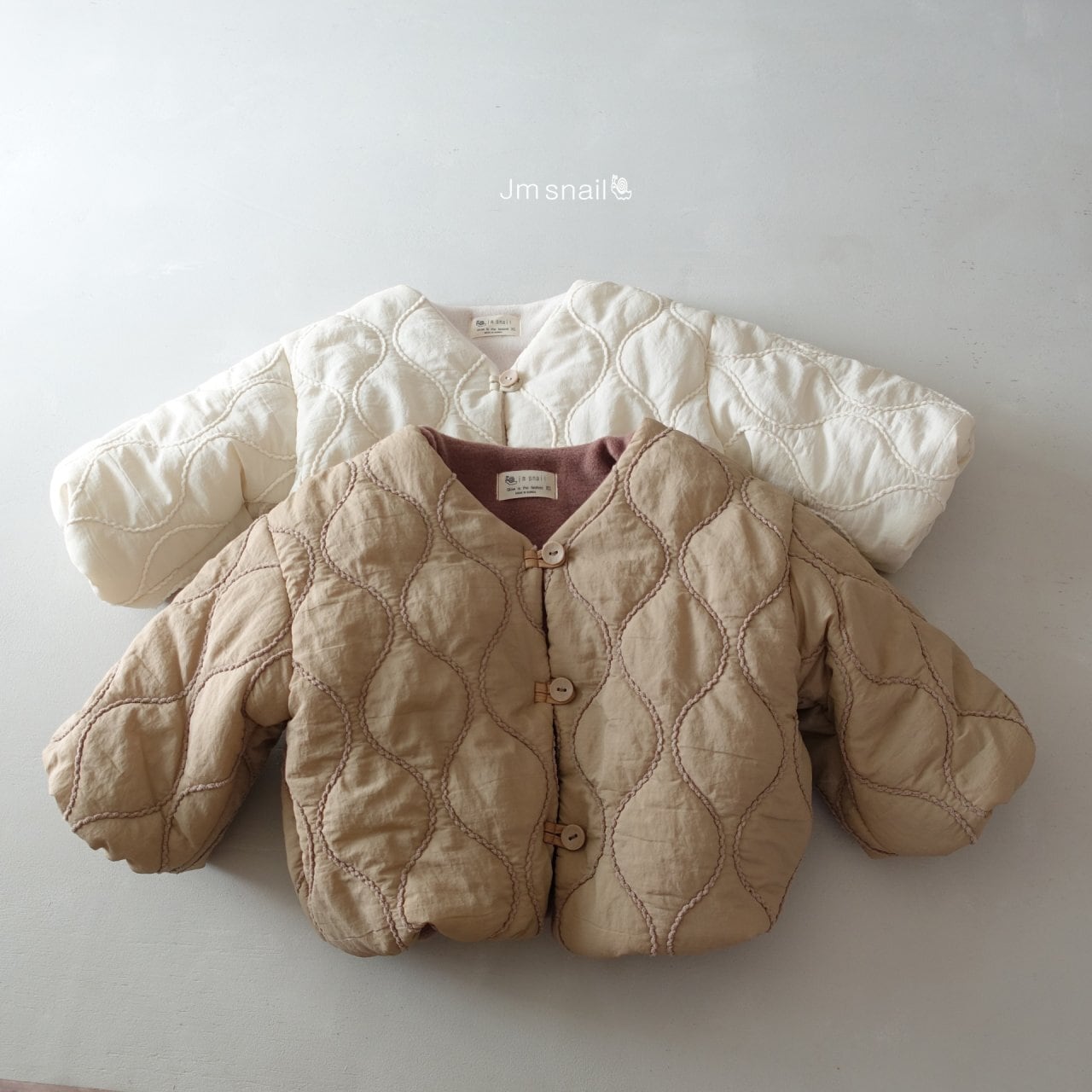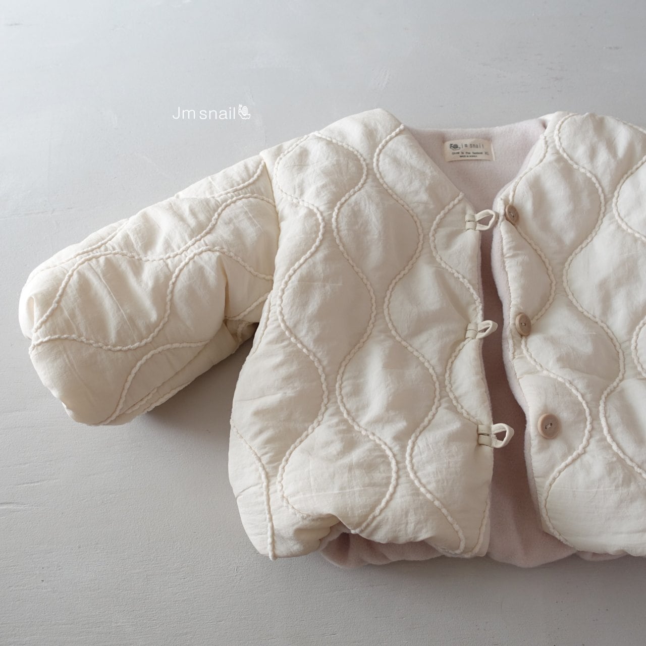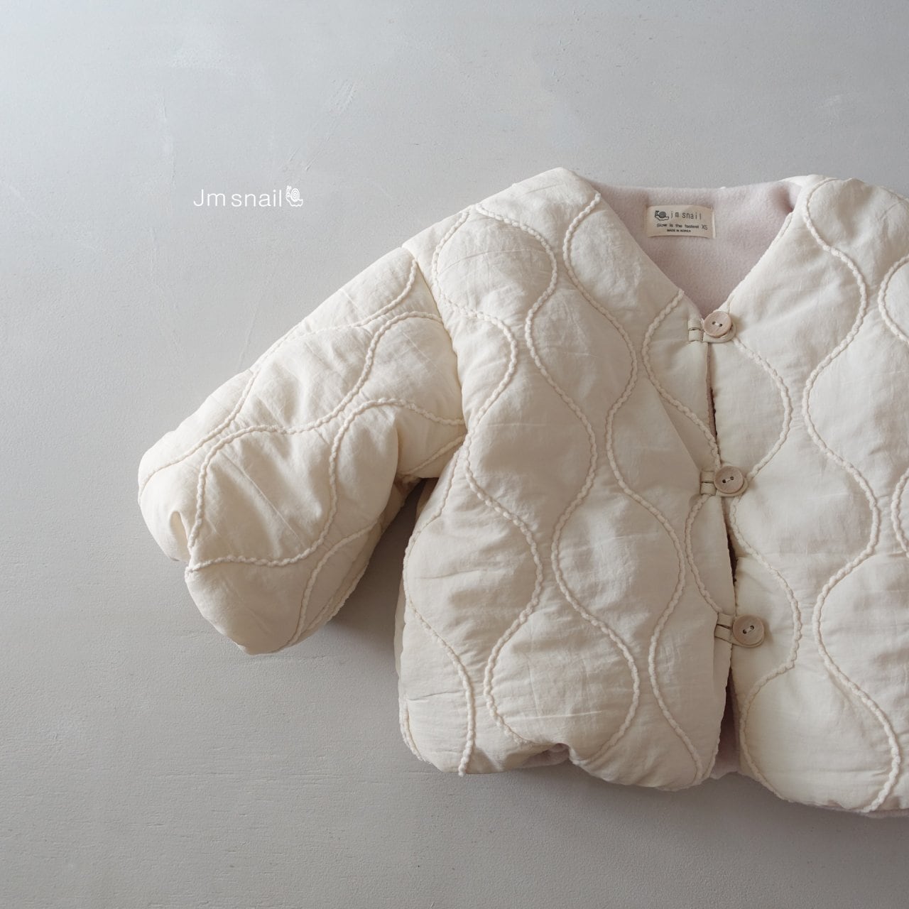 上品なウェーブキルティング刺繍がやさしく包み込むジャケットです。