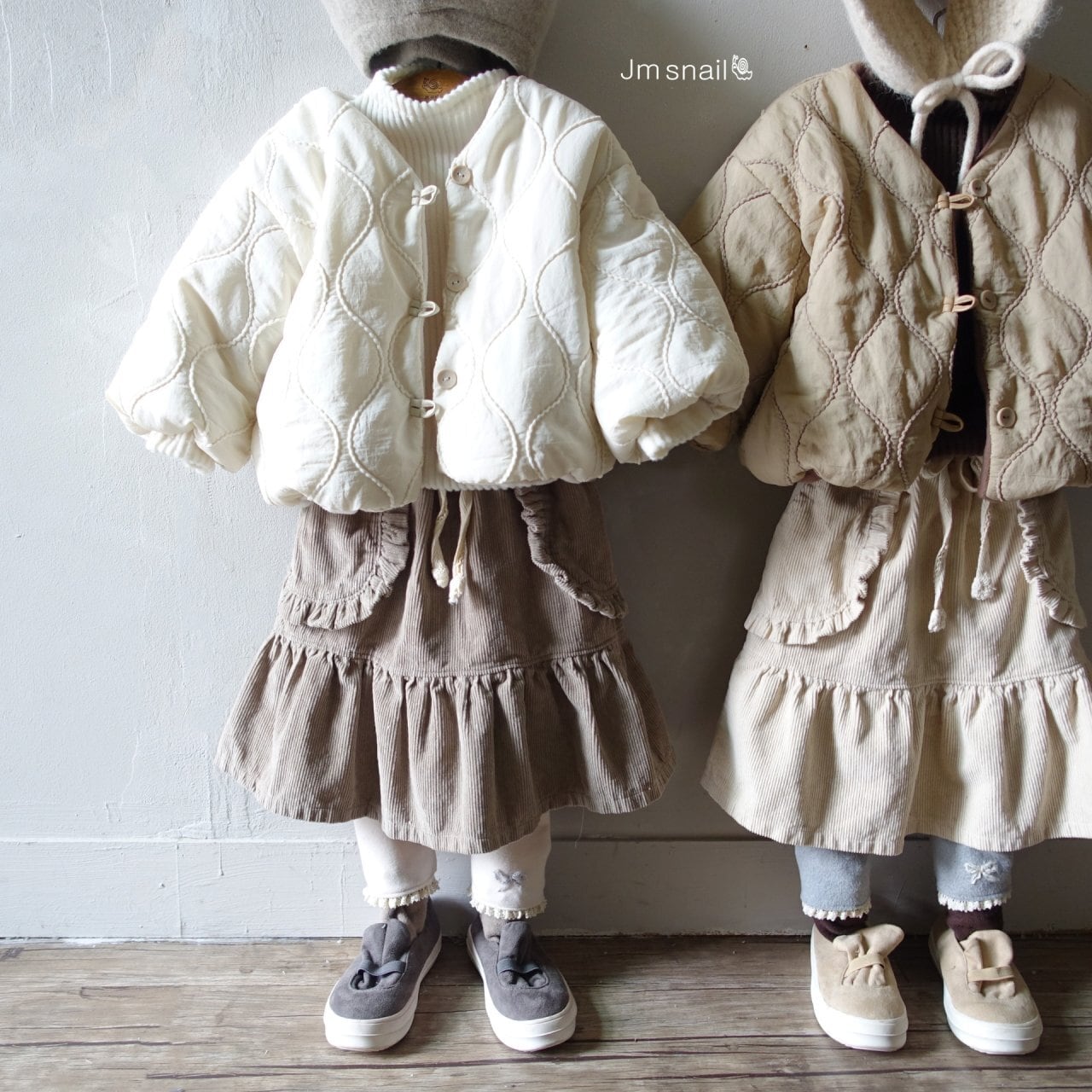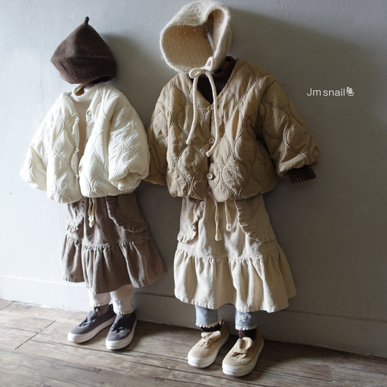 特徴的なウェーブキルティングと端正なボタン開きが落ち着いた冬のムードを引き立てシンプルながら洗練された印象をつくります。