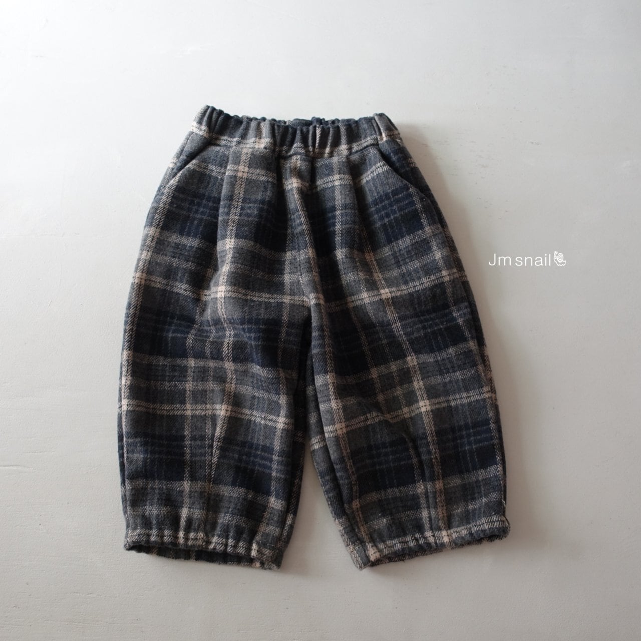 上品でやわらかなチェック柄のあたたかい冬素材で仕立てたパンツです。