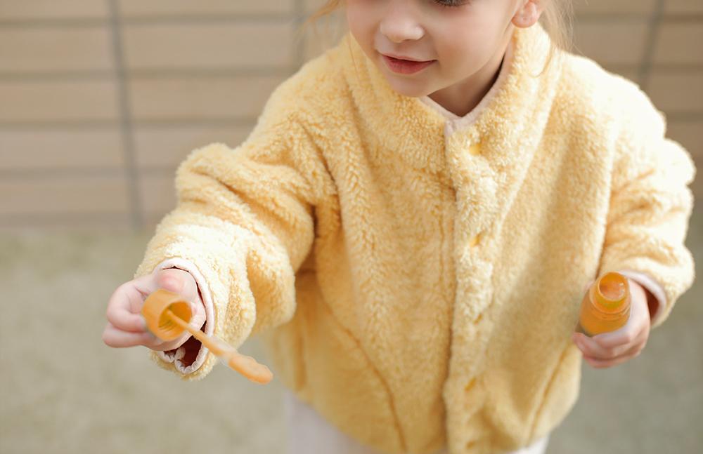 着用した瞬間にふんわりと包みこみ袖口と裾にはやさしい配色バンディングをほどこし保温性とさわやかなアクセントをかなえています。