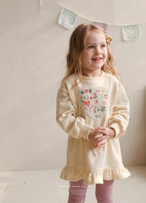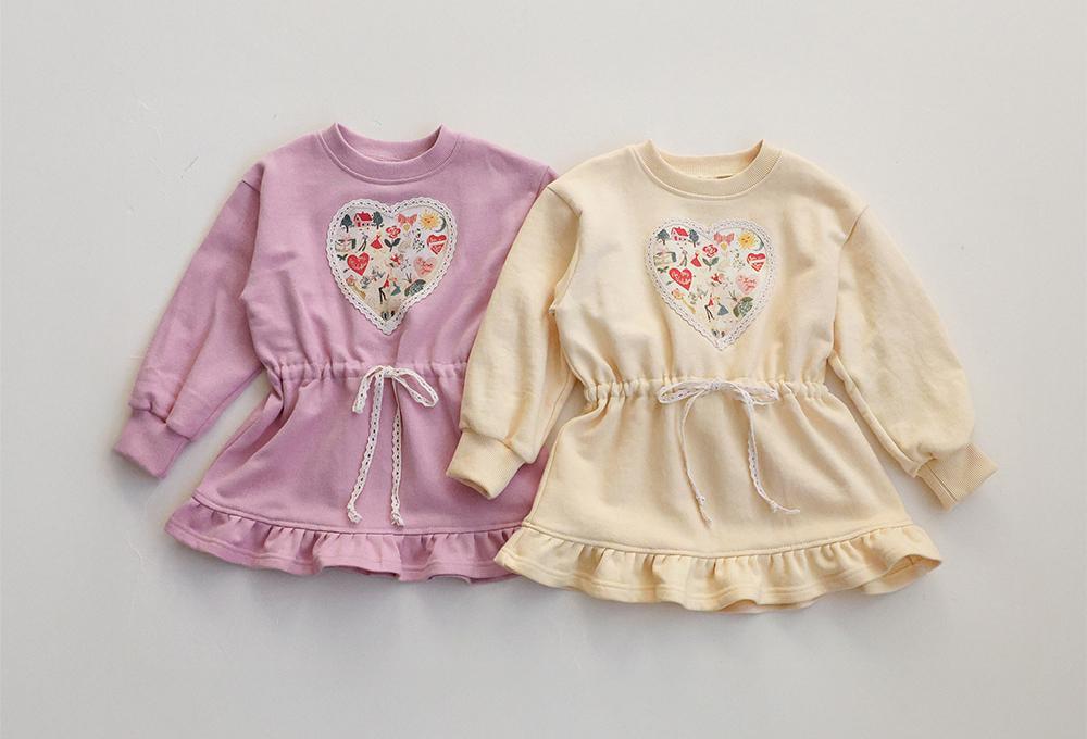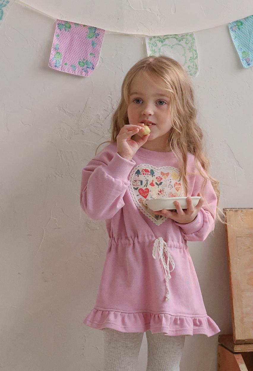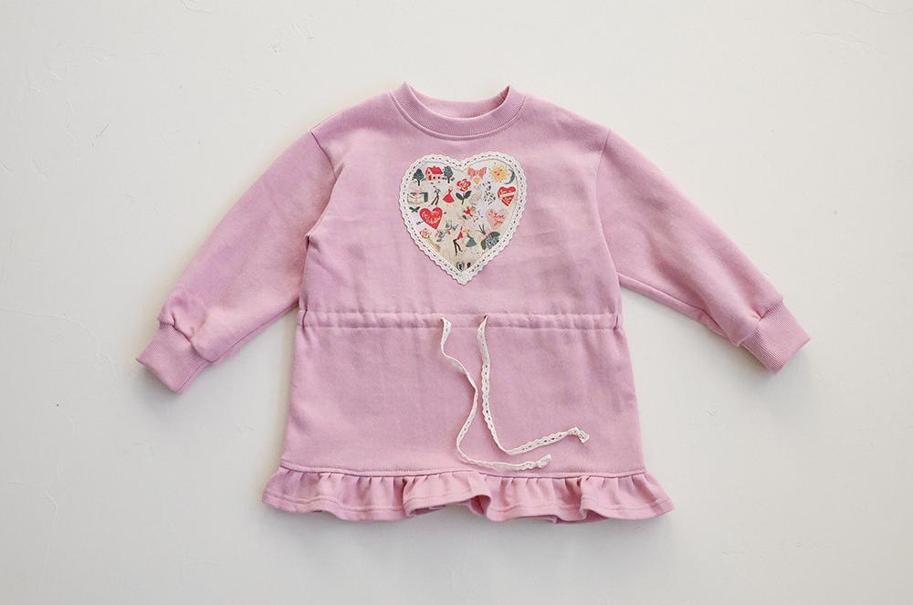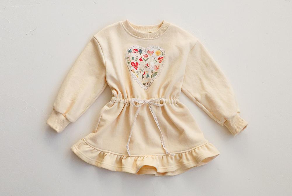 胸元にはハートのレース飾りをあしらい、さりげない甘さをプラス。