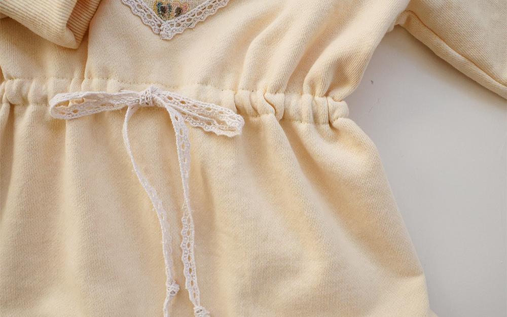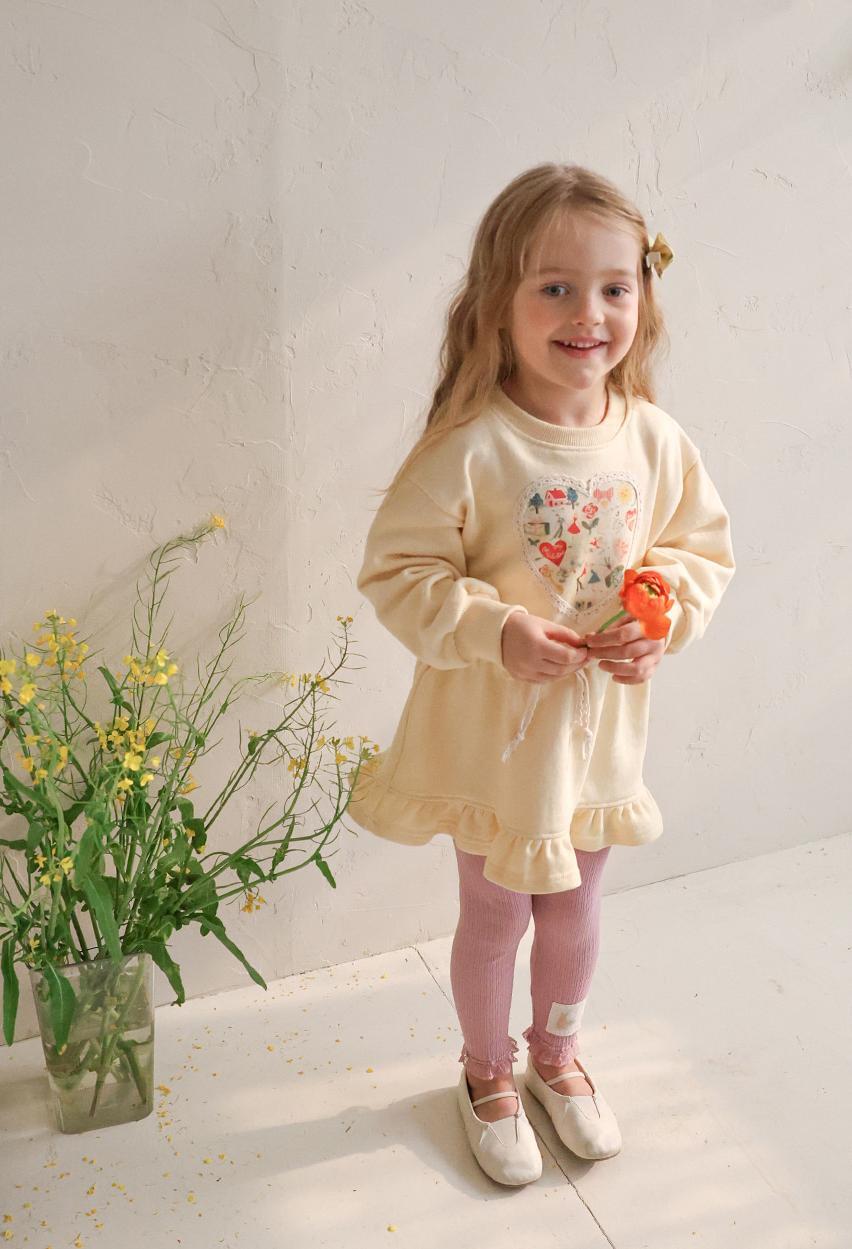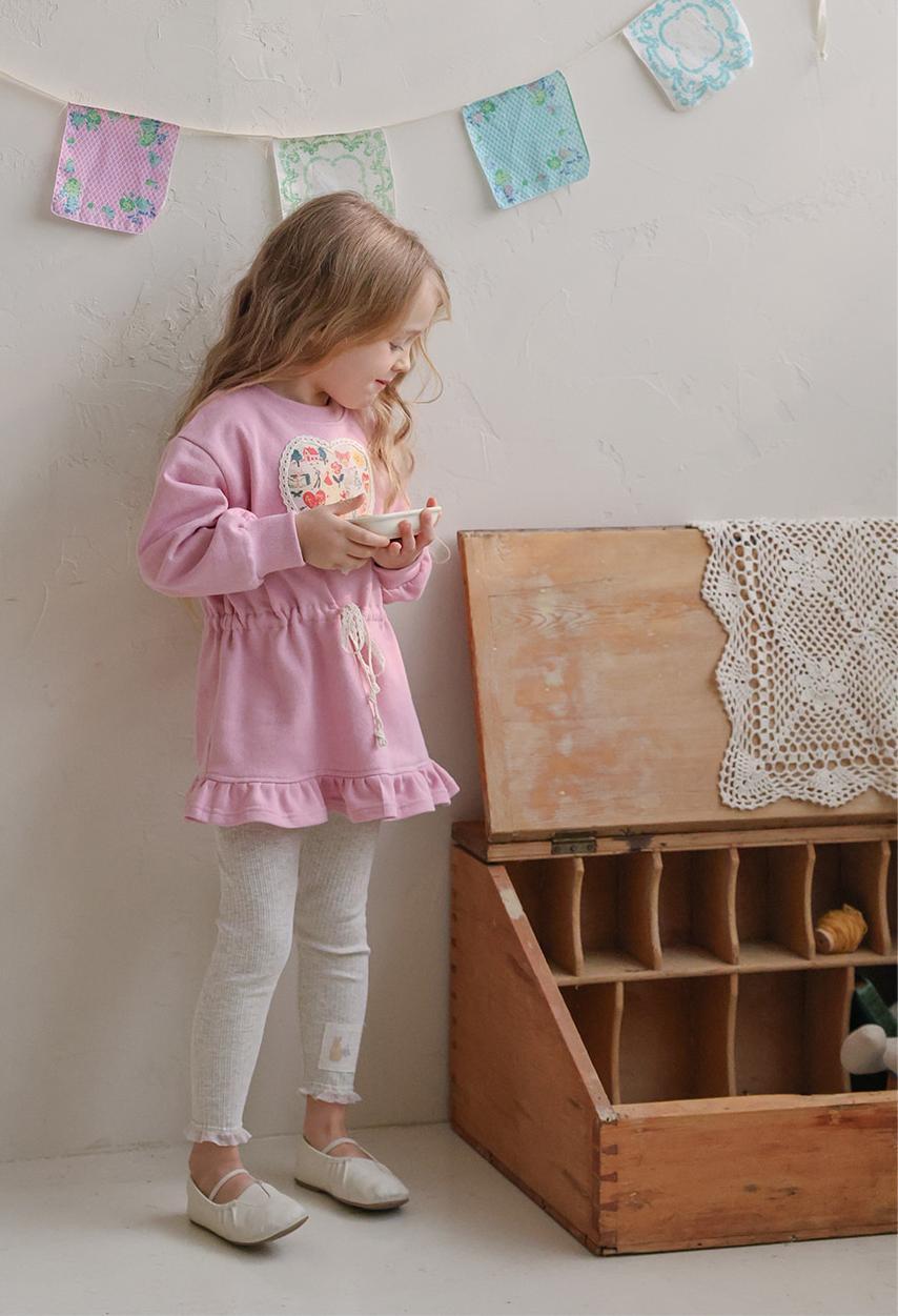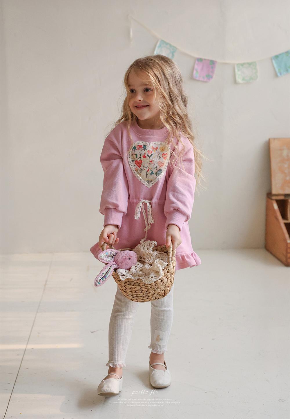 胸元にはハートのレース飾りをあしらい、さりげない甘さをプラス。